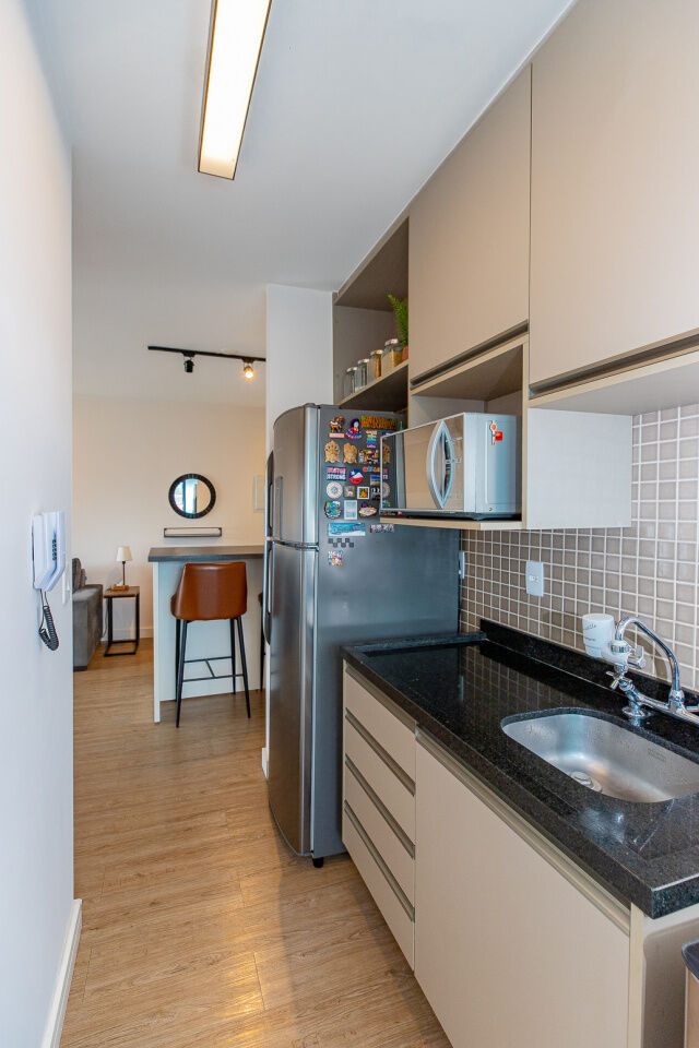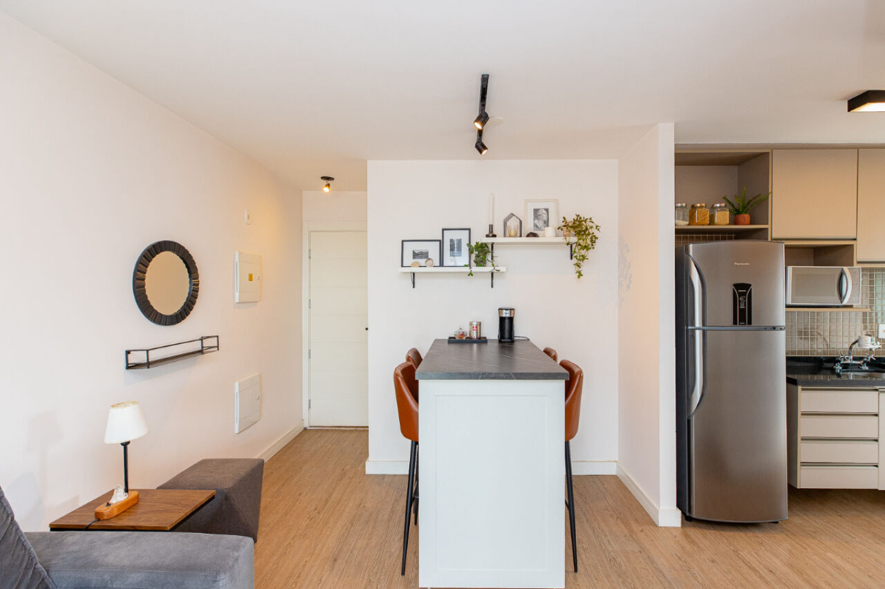 O imóvel possui 42 m² muito bem distribuídos, com 1 dormitório e foi totalmente reformado, oferecendo um alto padrão de acabamento, com projeto hiper moderno, funcional e elegante.