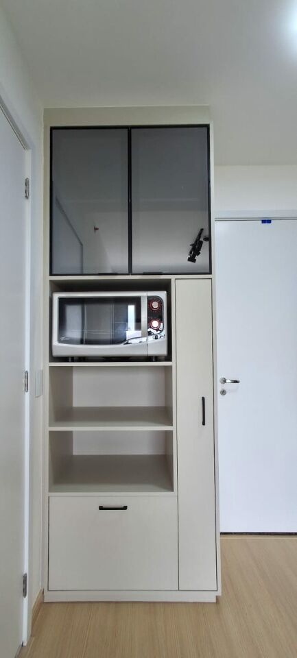 Torre adicional em projeto único, para forno, prateleira e armário aéreo 2 portas.