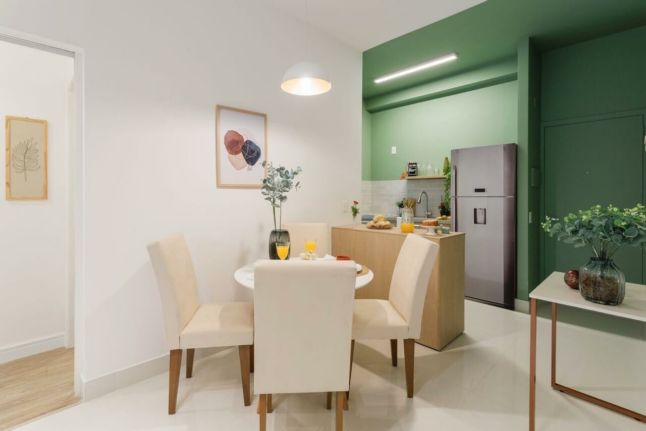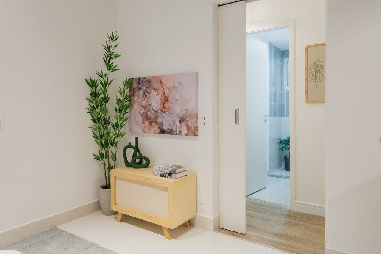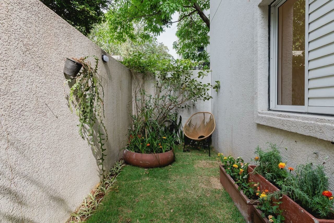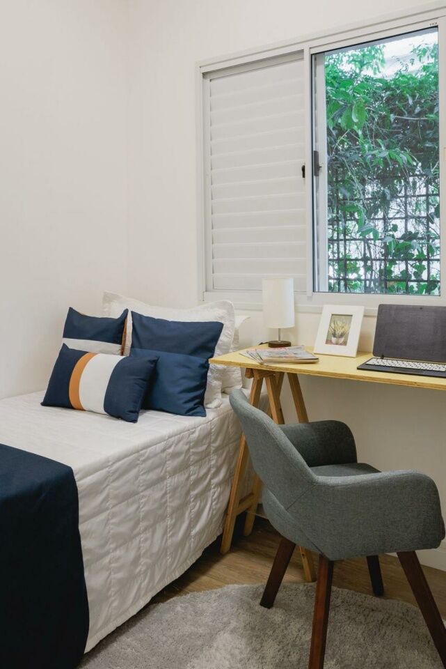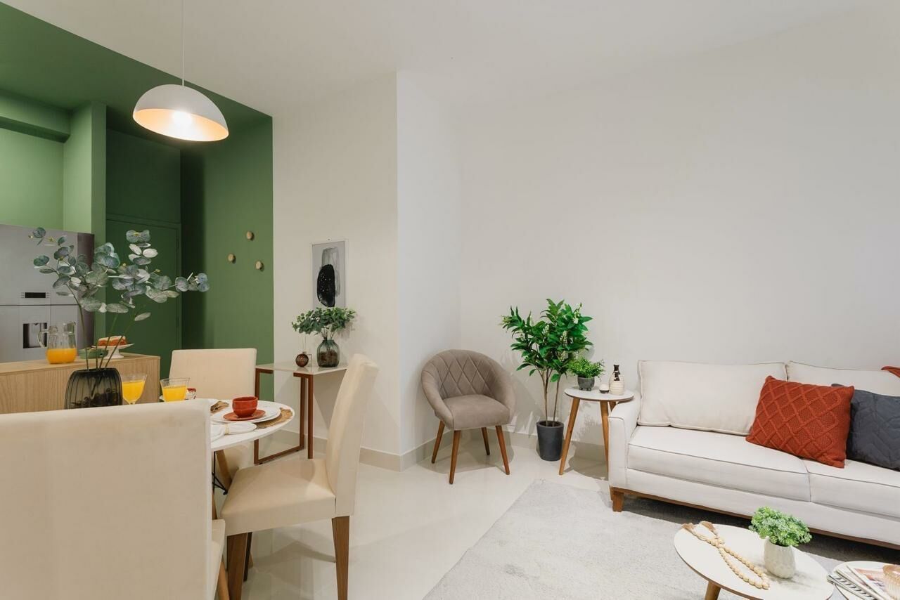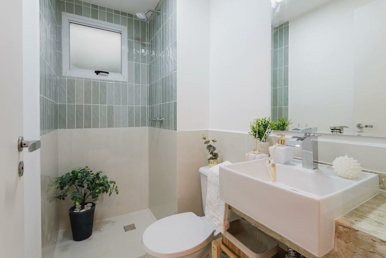 Apartamento Garden de 79 m², sala para dois ambientes, 3 quartos, sendo 1 suíte, varanda, 2 banheiros, cozinha tipo americana e área de serviço.