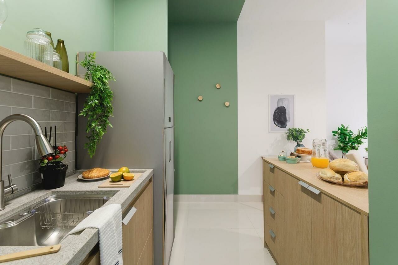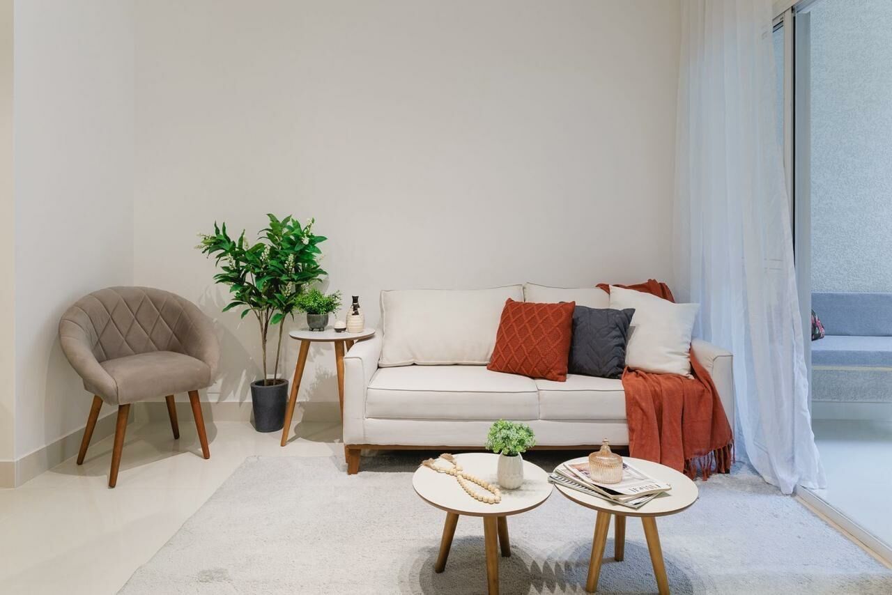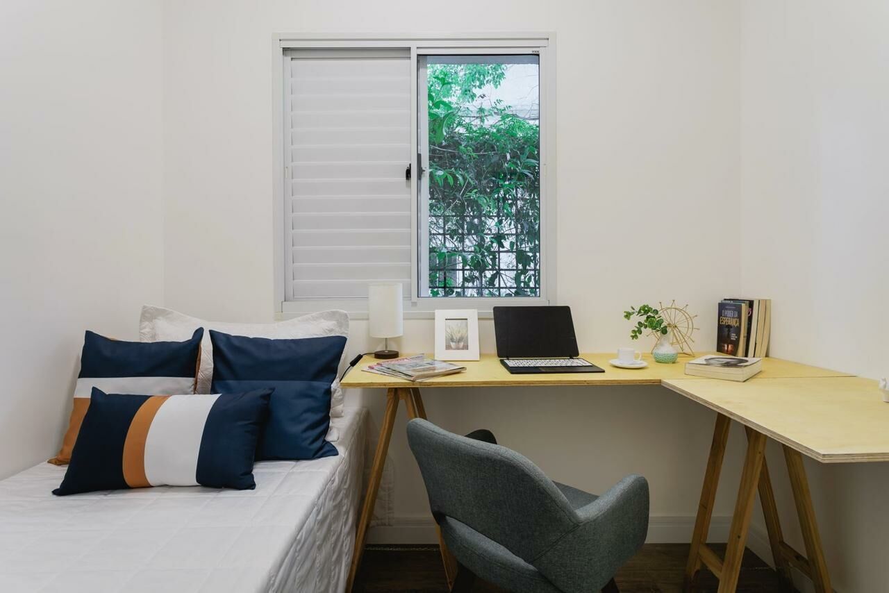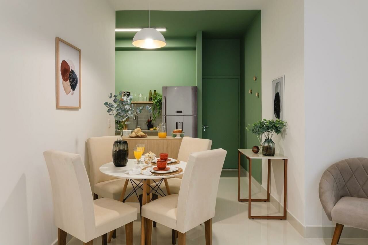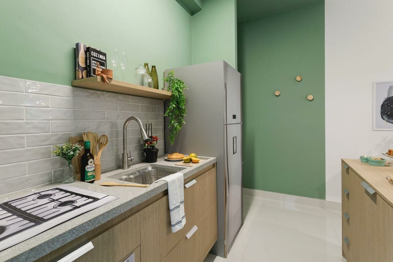 Apartamento Garden de 79 m², sala para dois ambientes, 3 quartos, sendo 1 suíte, varanda, 2 banheiros, cozinha tipo americana e área de serviço.