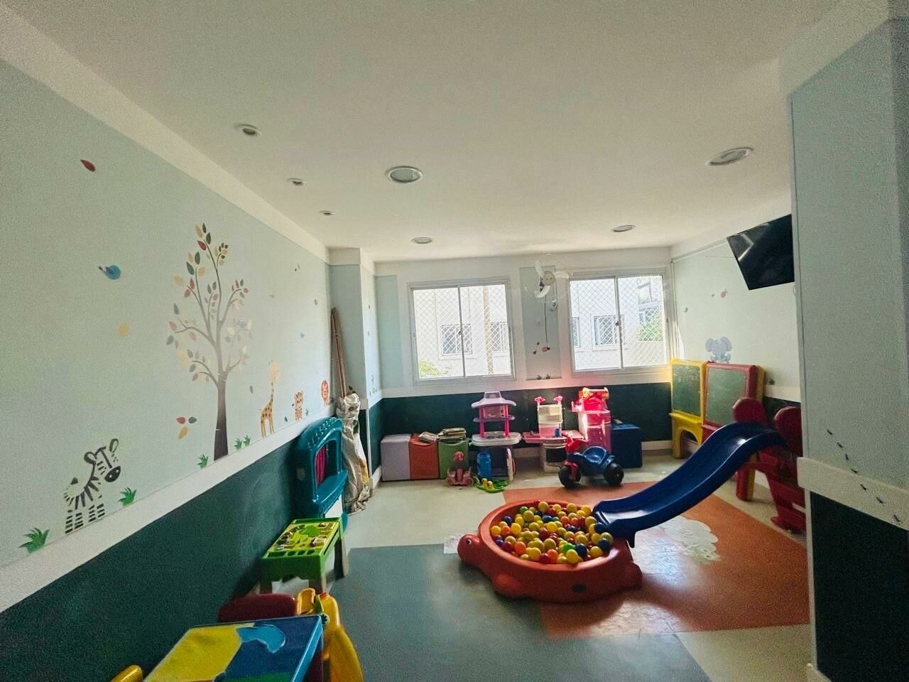 Condomínio clube com lazer completo: piscina, academia, churrasqueira, playground, brinquedoteca, salão de jogos, salão de festas e quadra poliesportiva.