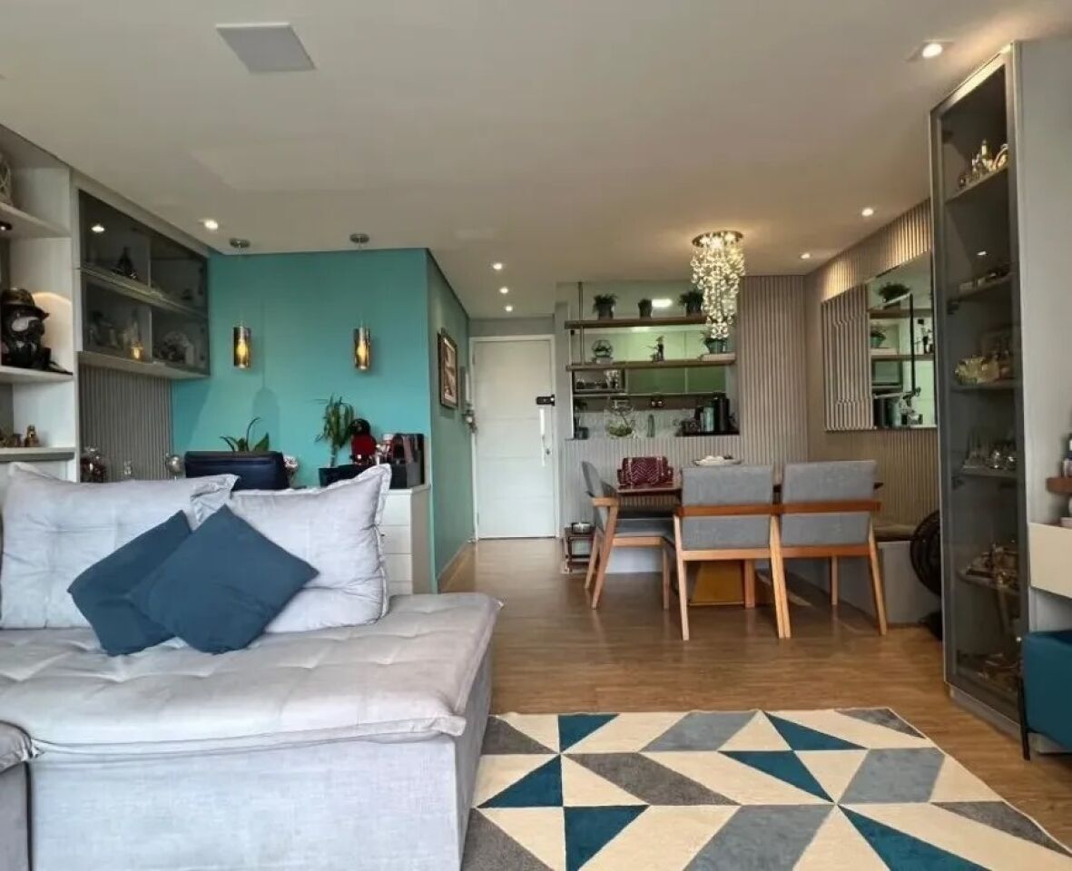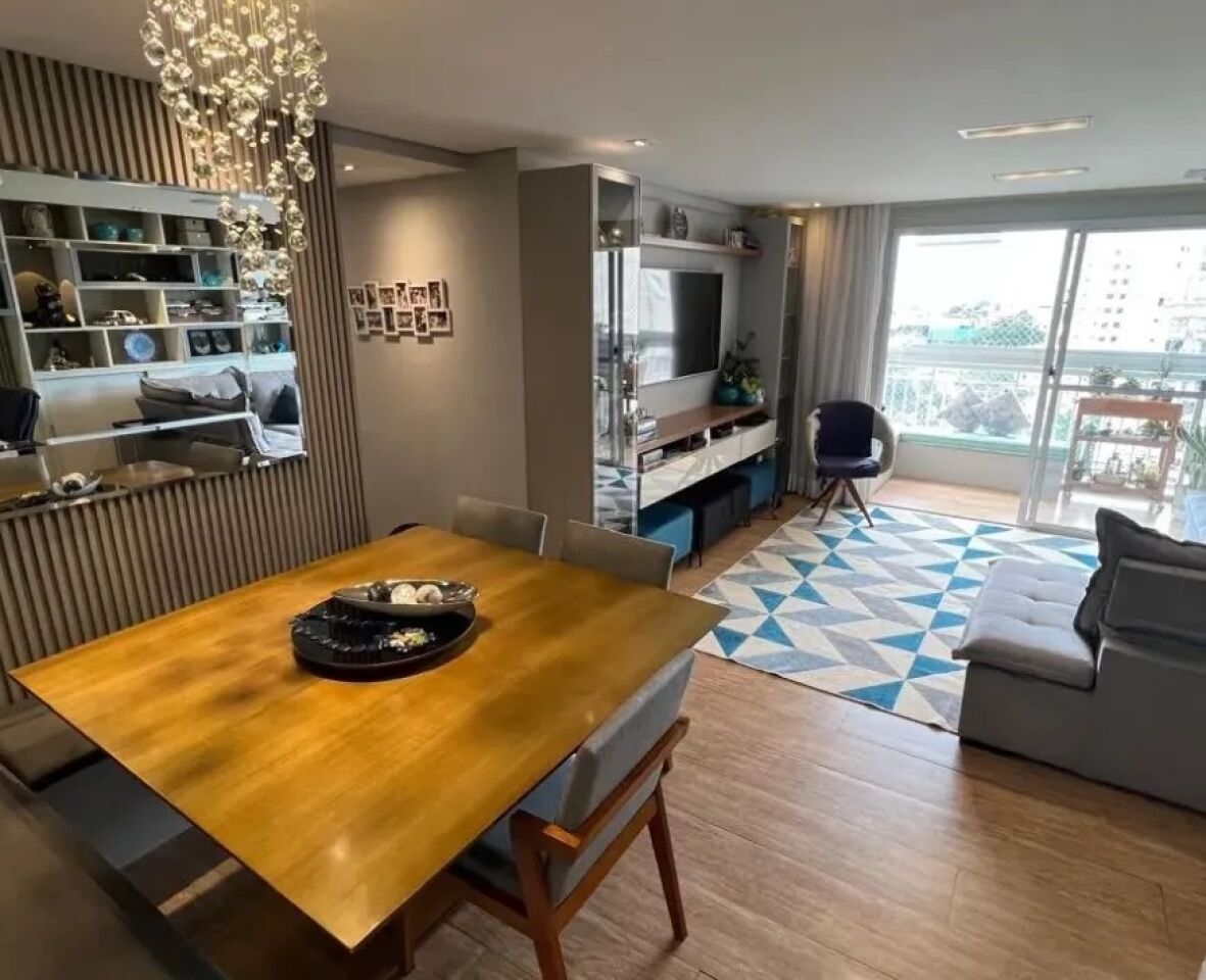 Apartamento todo reformado, com móveis planejados e sala unificada com a varanda, 3 dormitórios, 1 suíte, ampla varanda, ampla sala em dois ambientes, com cozinha aberta, 2 vagas cobertas e depósito privativo.