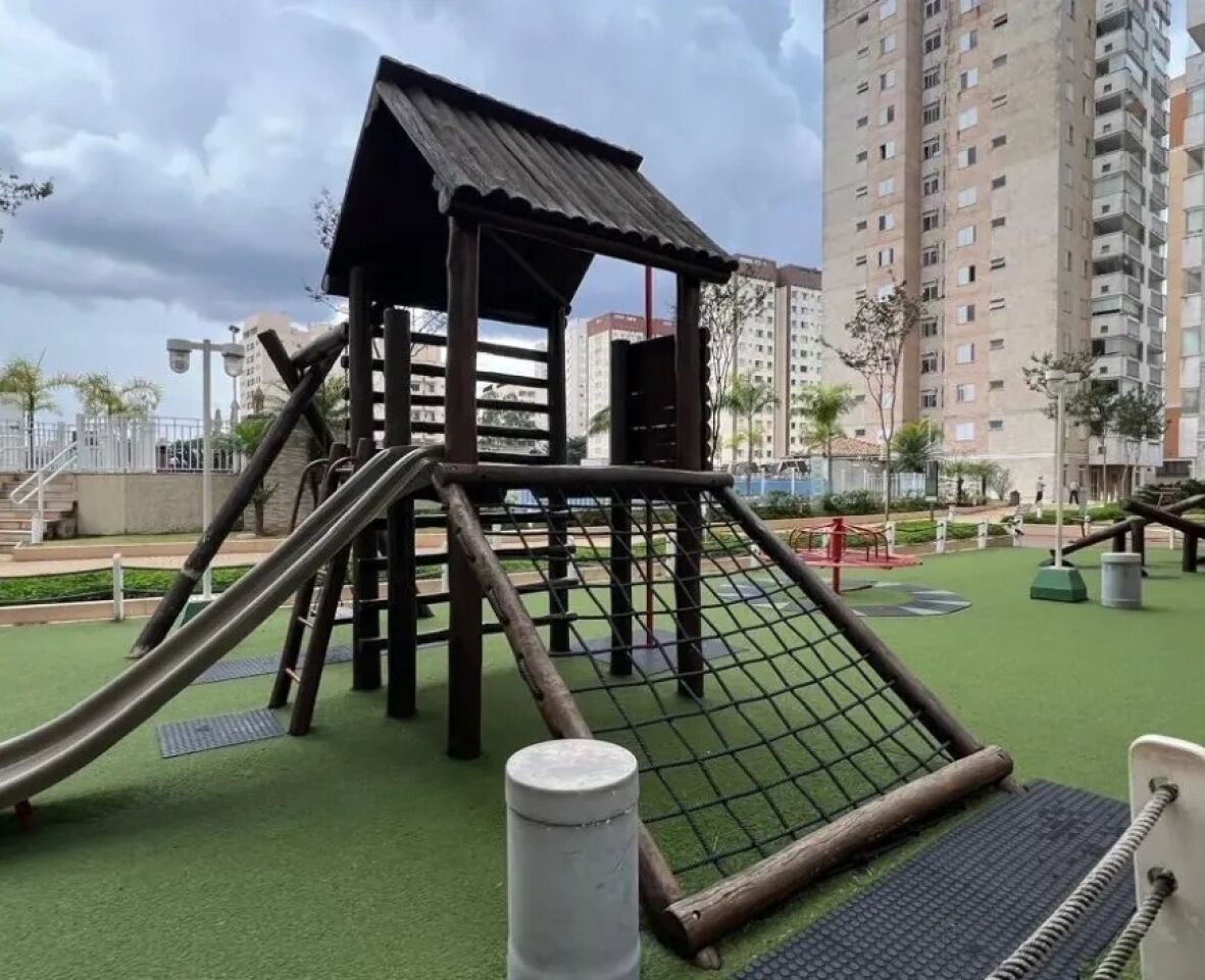 Jardins, piscina adulto e infantil, playground e quadras poliesportivas para atividades ao ar livre;