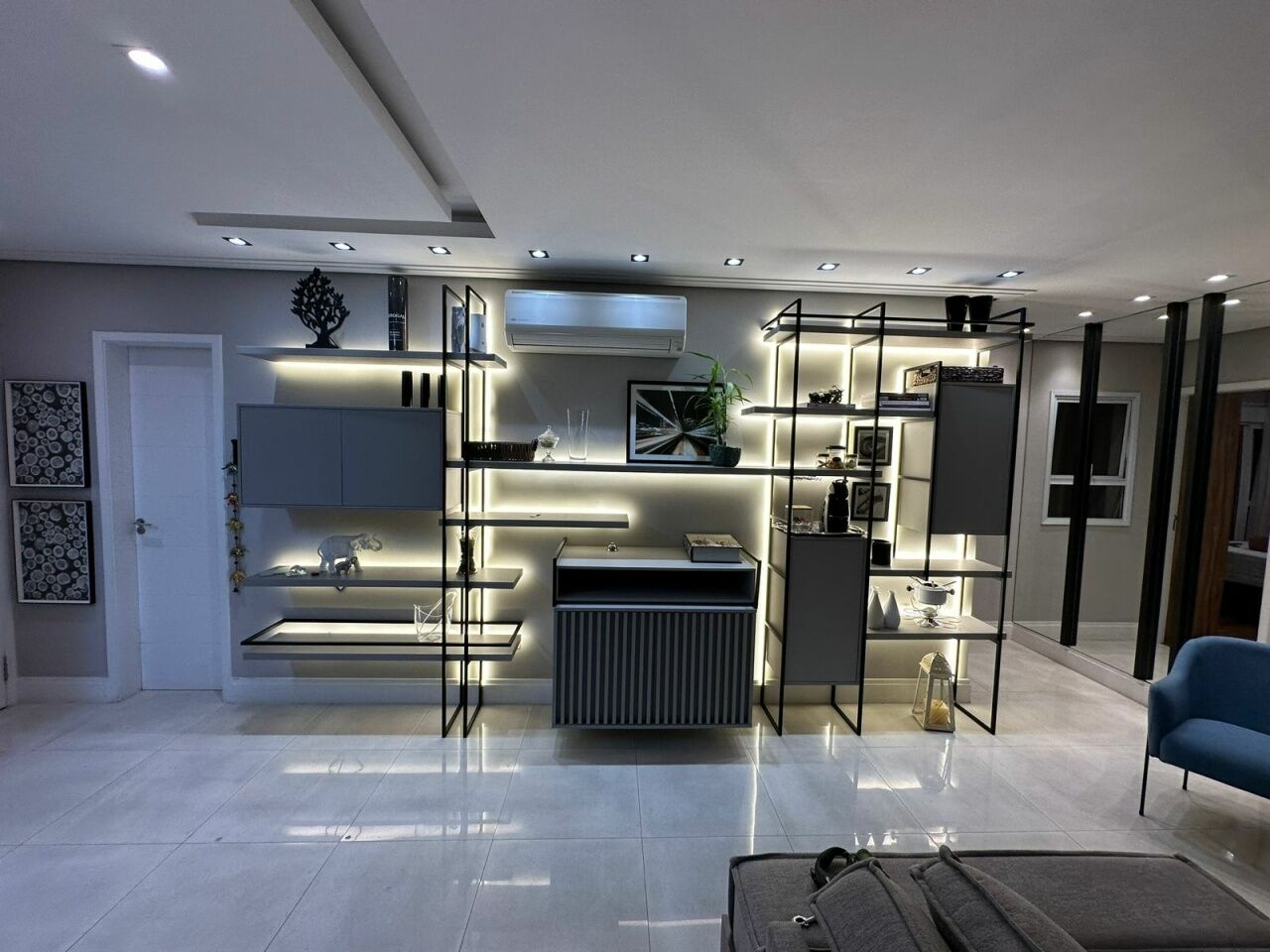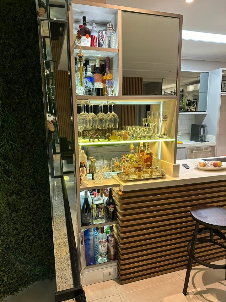 SALA ampla, arejada, iluminada e bem distribuída para dois confortáveis ambientes, integrada à uma varanda gourmet, envidraçada com muita luz natural. Já com cortinas, uma churrasqueira e pia. Uma excelente varanda gourmet.