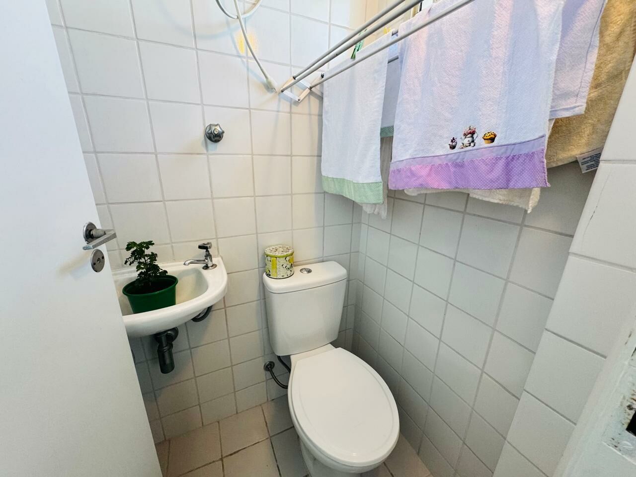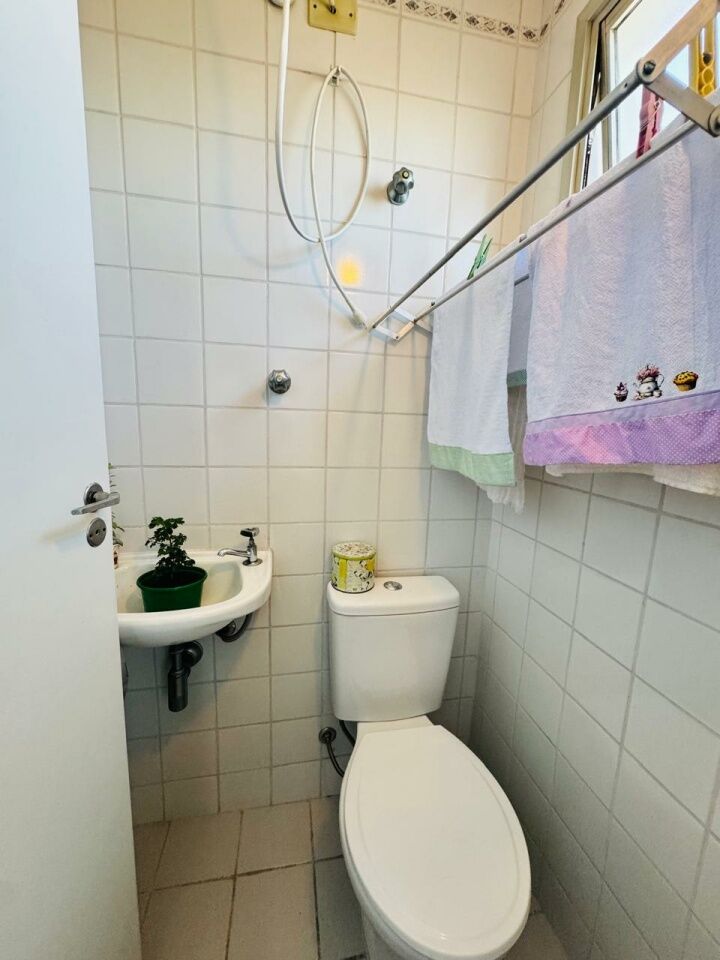 Planta Versátil: São 02 banheiros (Social e Serviço). O quarto de serviço pode ser facilmente transformado em Escritório (Home Office) ou Closet, permitindo a atualização para uma Suíte Master.