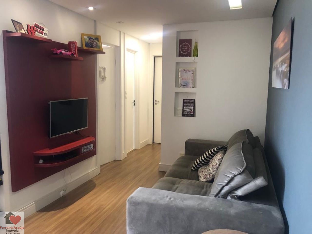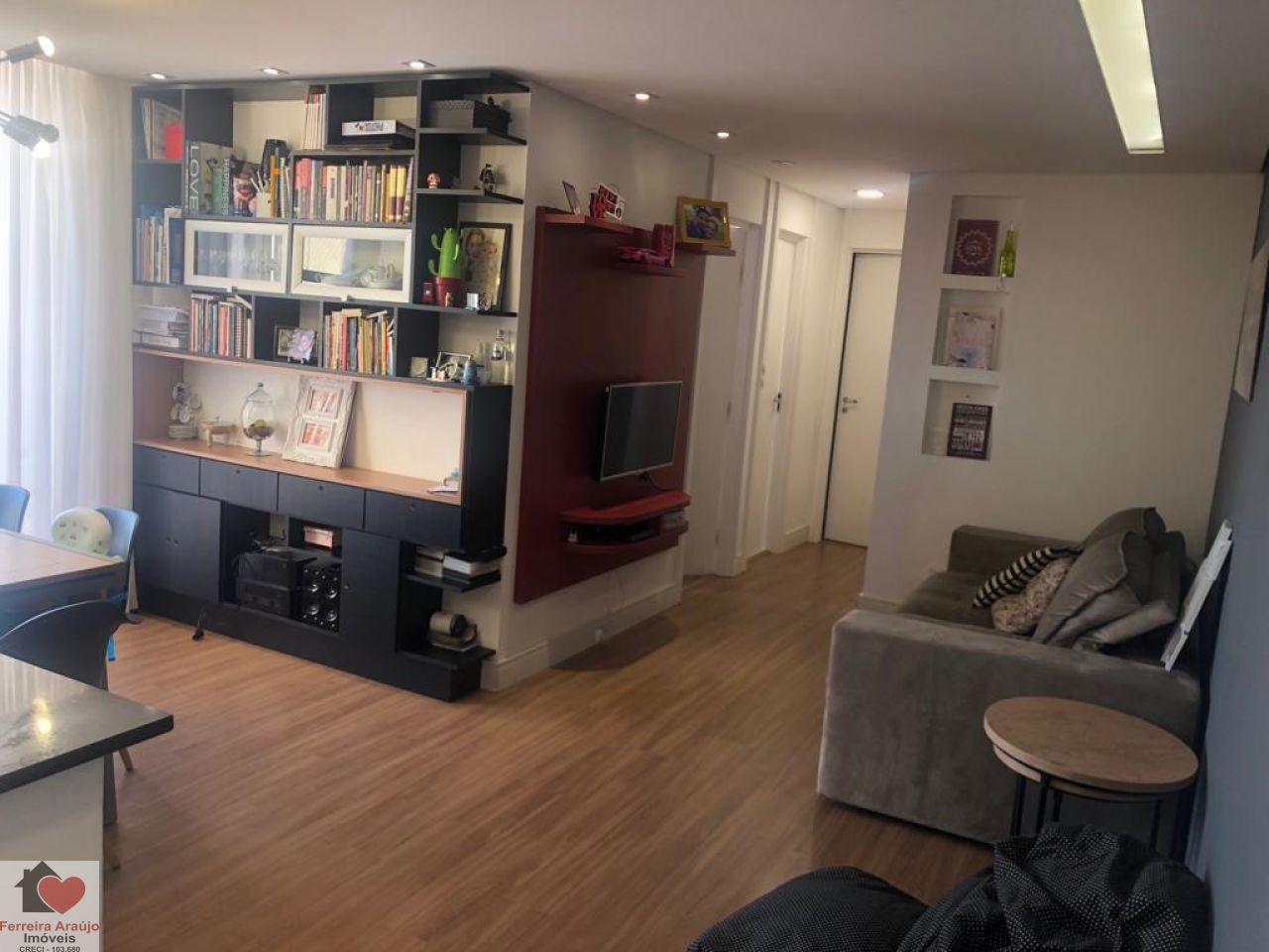 APARTAMENTO SALA PARA DOIS AMBIENTES, COM FINO ACABAMENTO, REPLETO DE ARMÁRIOS, VARANDA, 02 DORMITÓRIOS, SENDO 01 SUÍTE, 01 VAGA DE GARAGEM.