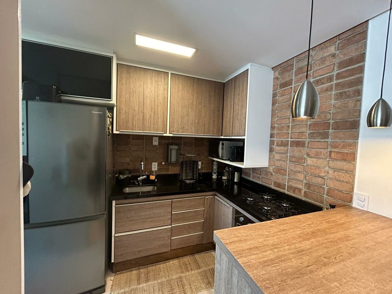 Cozinha tipo americana, moderna e funcional, ideal para quem gosta de interagir enquanto prepara suas refeições.