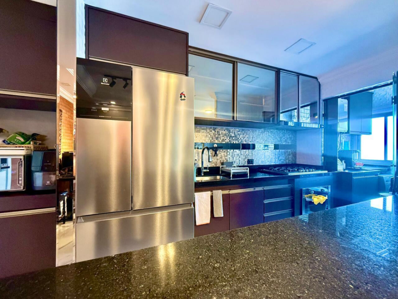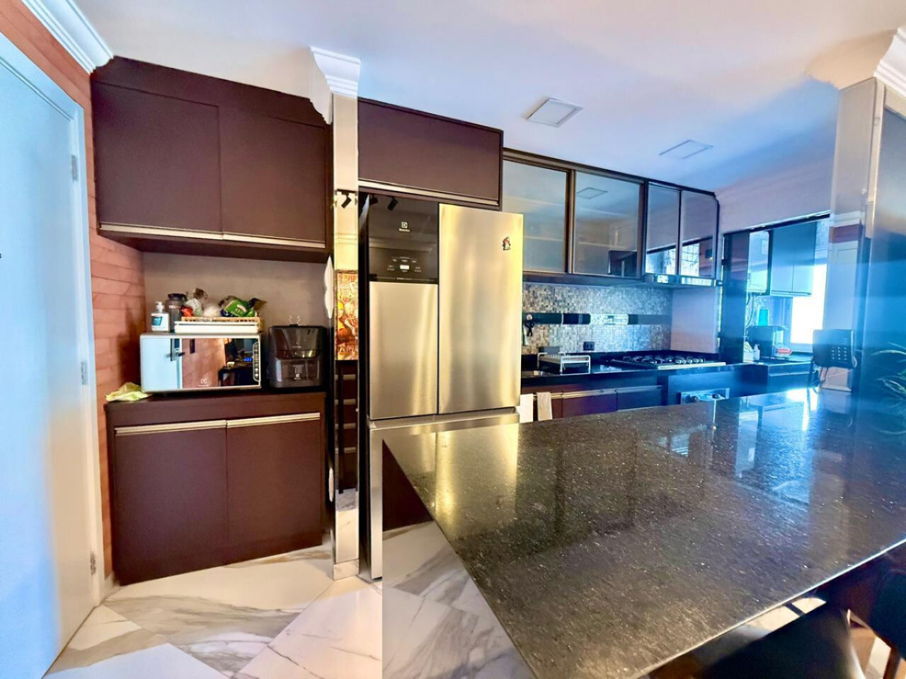 A varanda é um dos grandes destaques do imóvel, oferecendo um ambiente arejado para relaxar, tomar um café ou receber visitas.