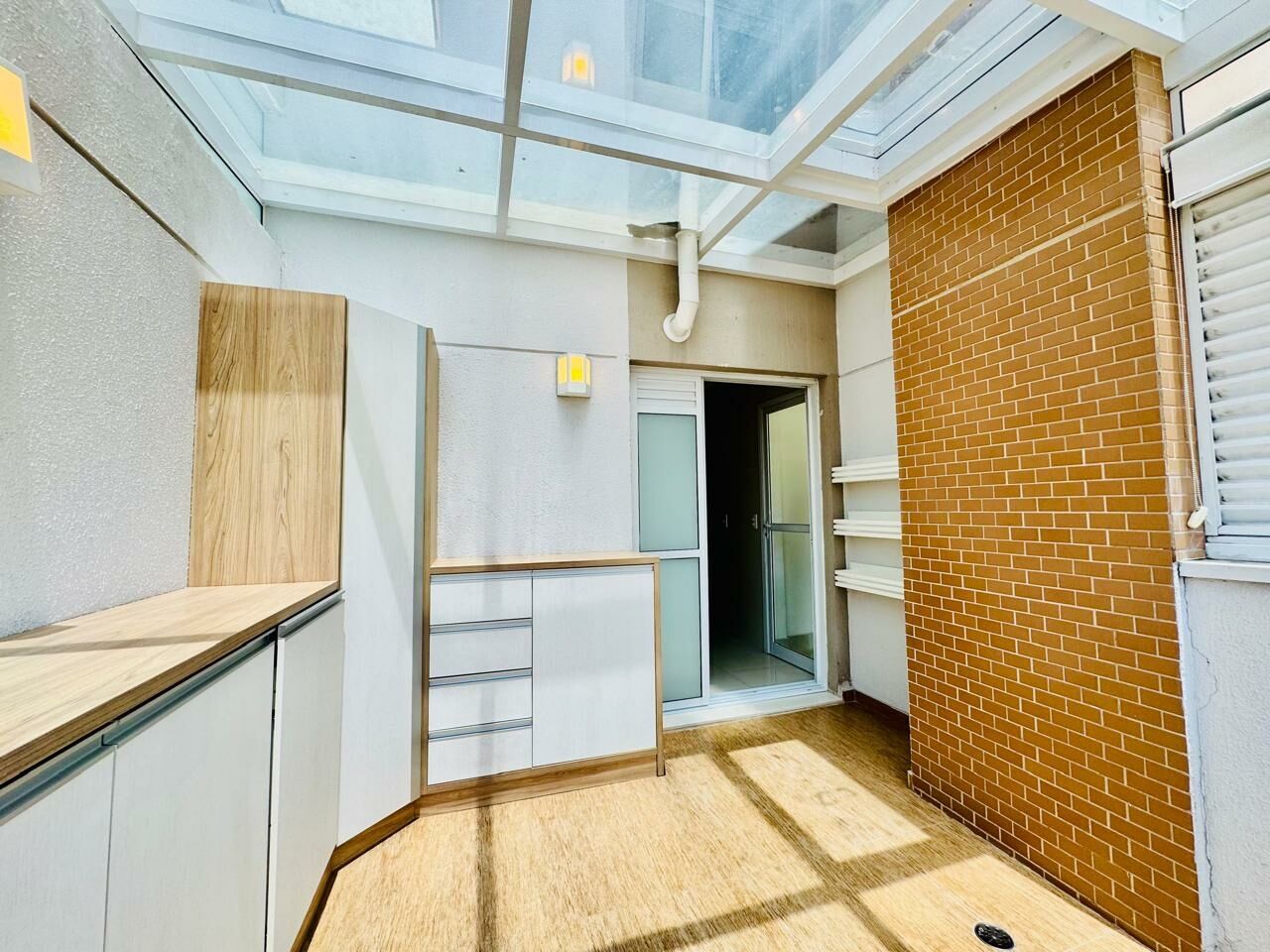 Lavanderia: Extra de 12m², coberta com vidro e persianas.