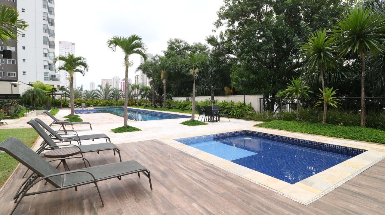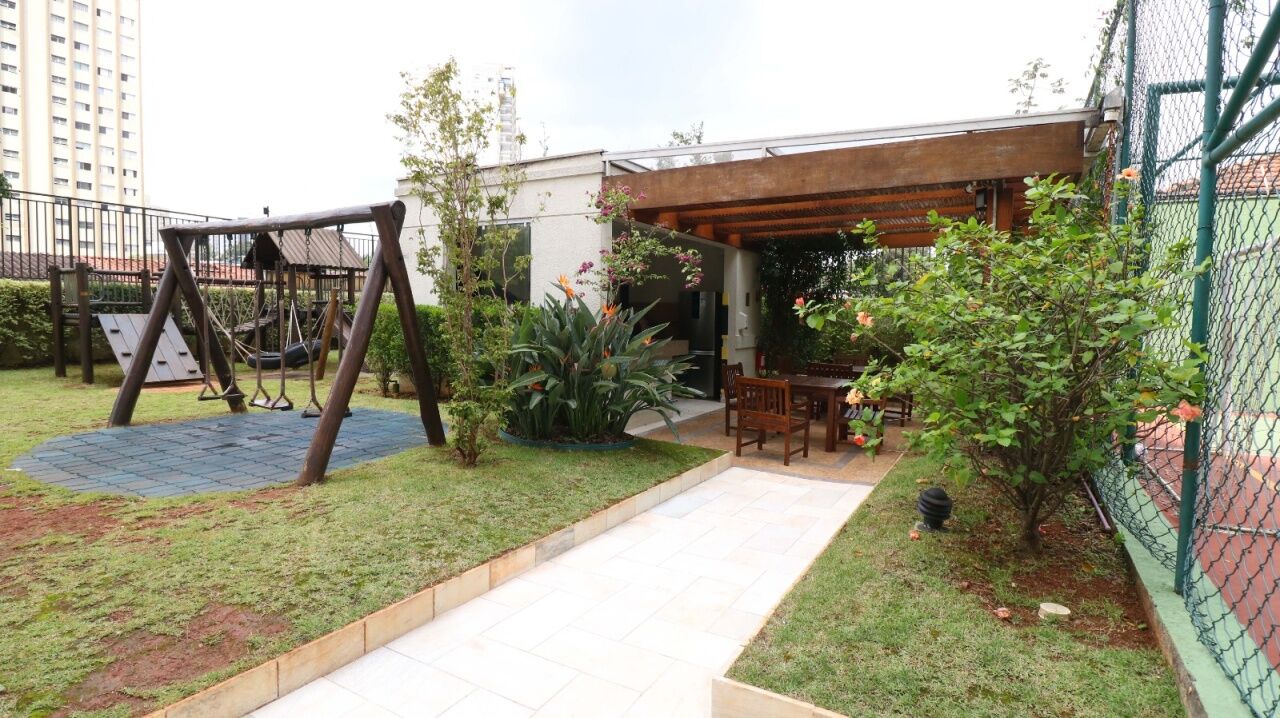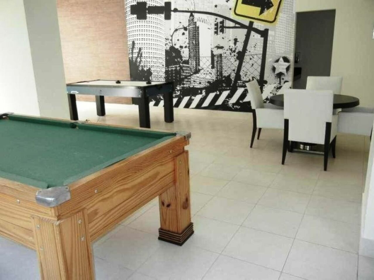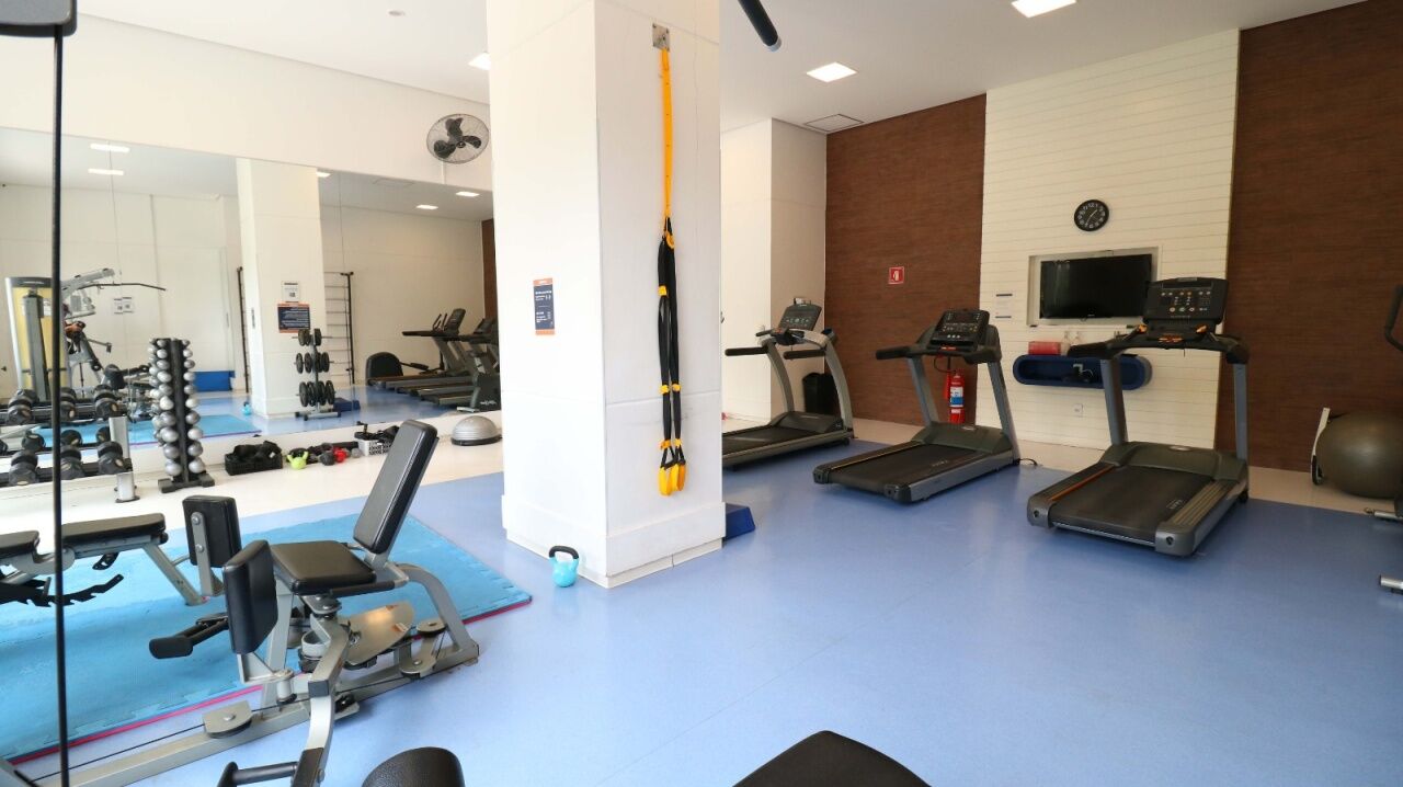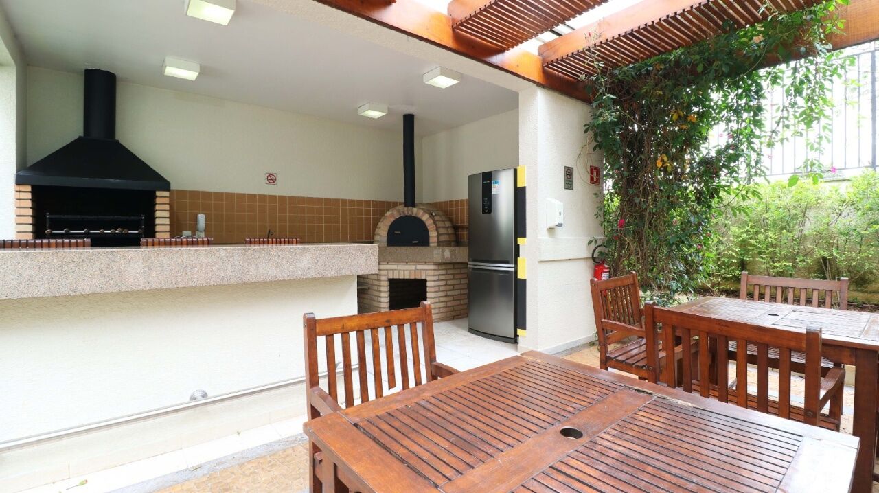 Condomínio com lazer completo, academia, piscina, brinquedoteca, playground, quadra de esportes, churrasqueira, forno de pizza