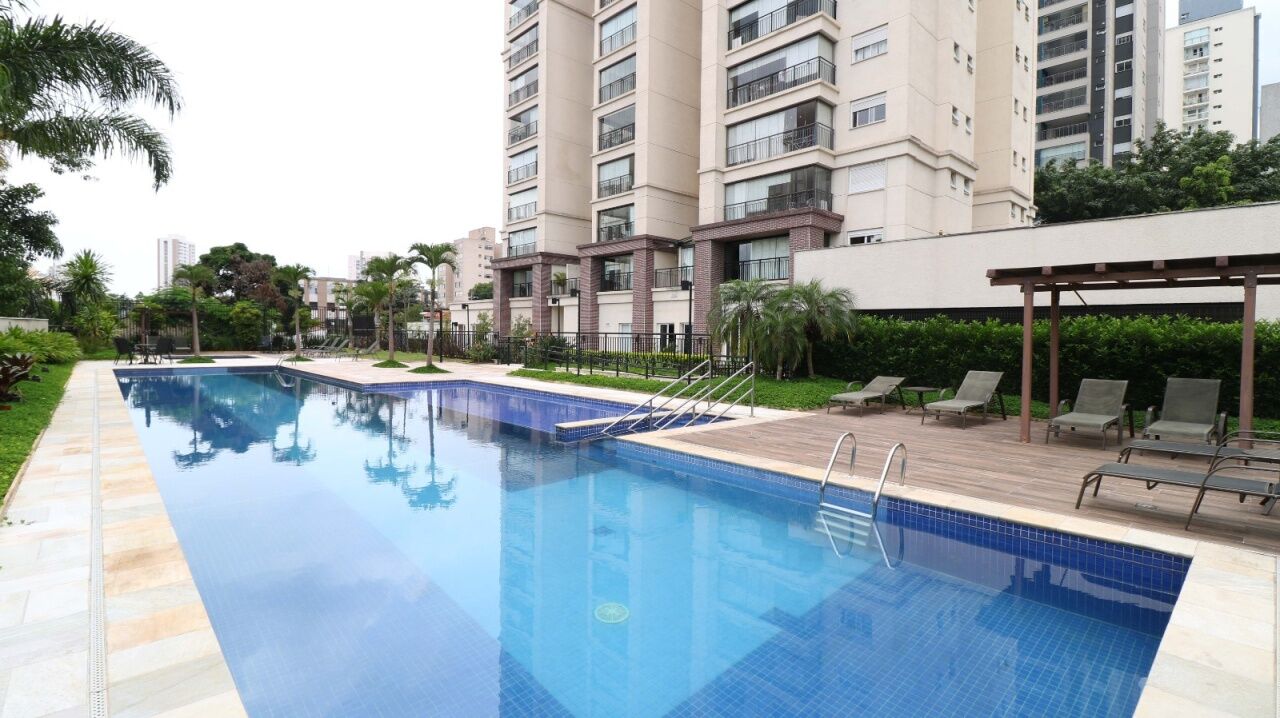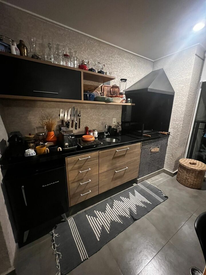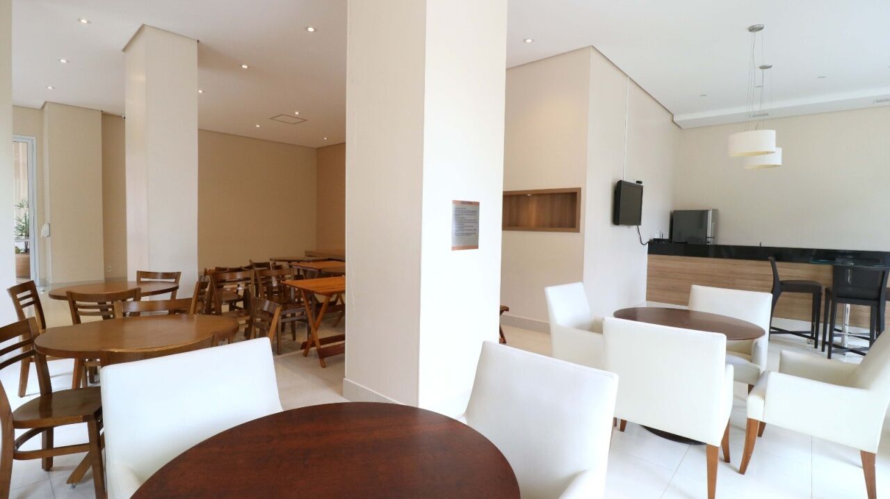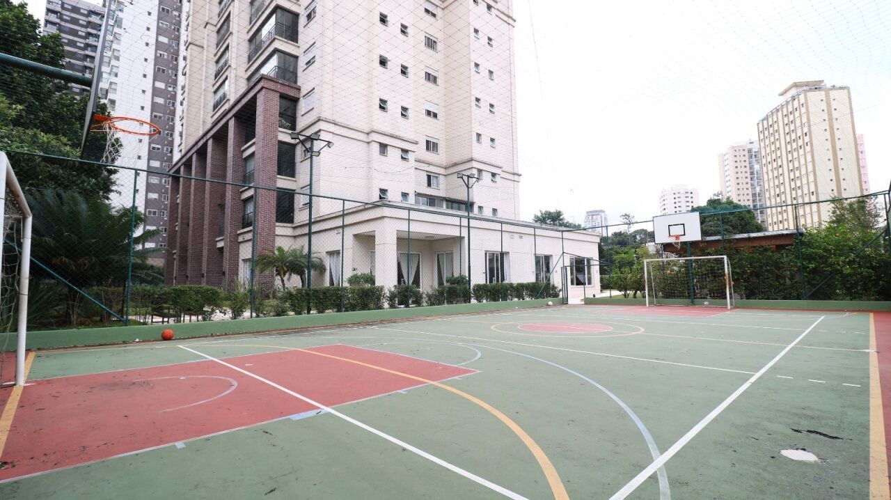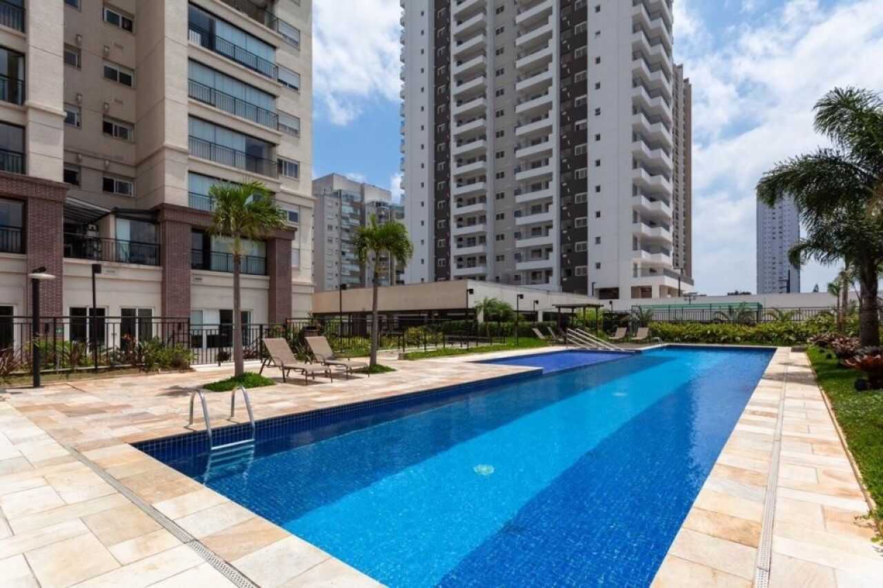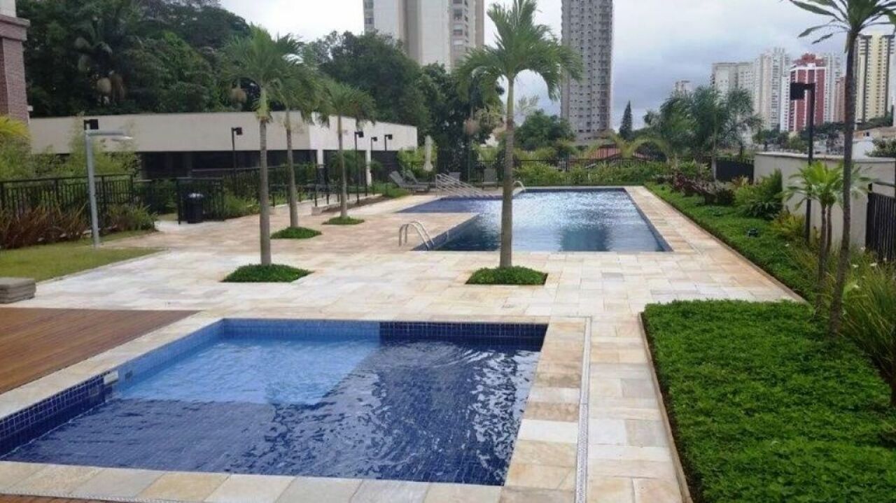 Condomínio com lazer completo, academia, piscina, brinquedoteca, playground, quadra de esportes, churrasqueira, forno de pizza