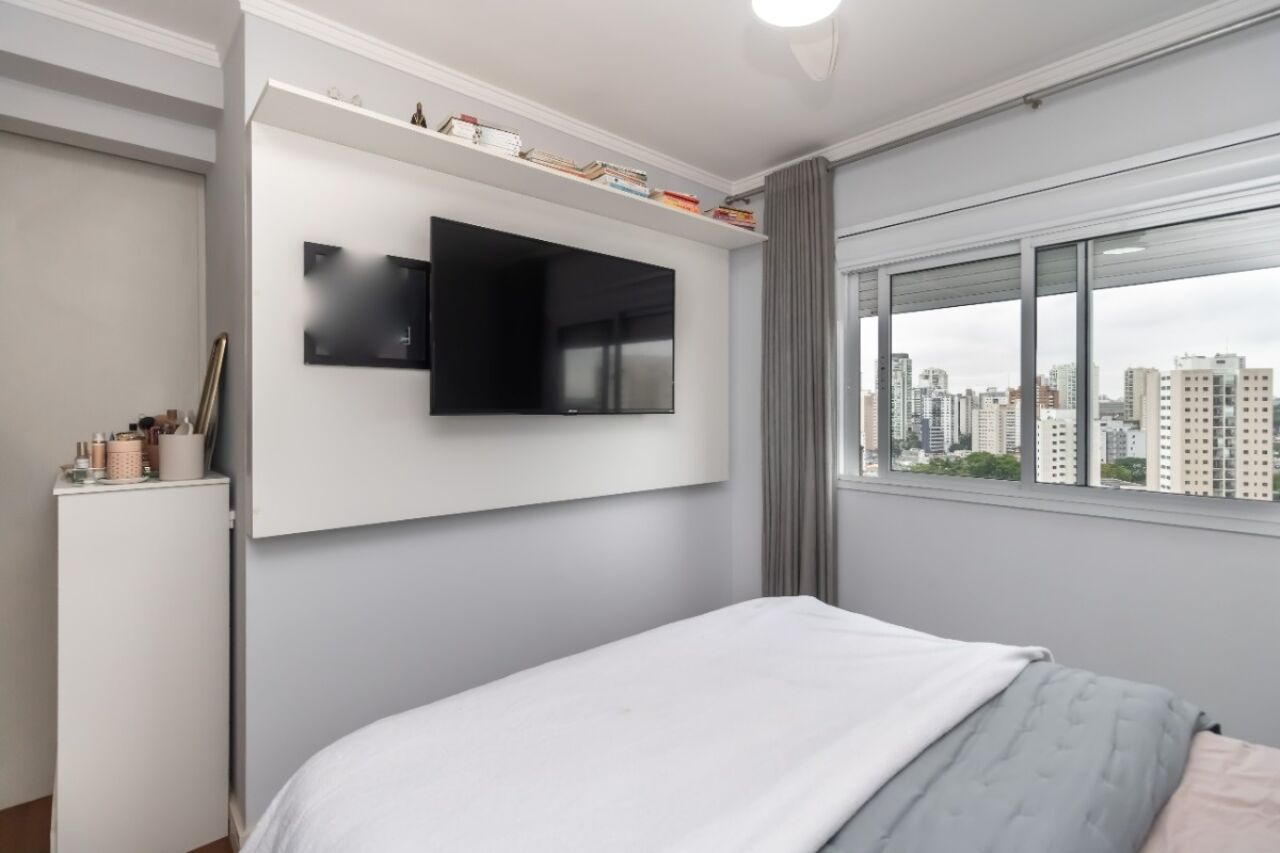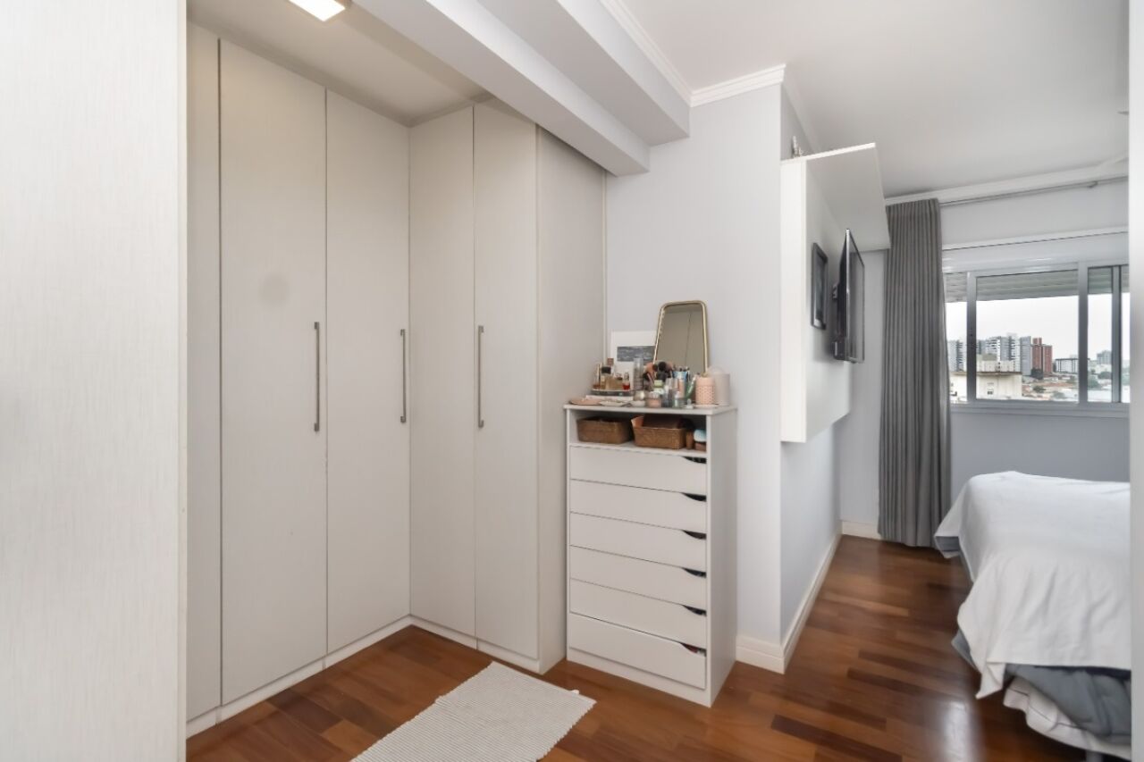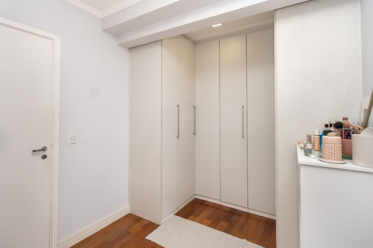 Originalmente com 03 dormitórios, sendo 01 suíte, a planta foi inteligentemente atualizada para 02 dormitórios, proporcionando espaços mais amplos e integrados. A suíte é um refúgio particular, com armários embutidos de alta qualidade e elegante piso laminado.