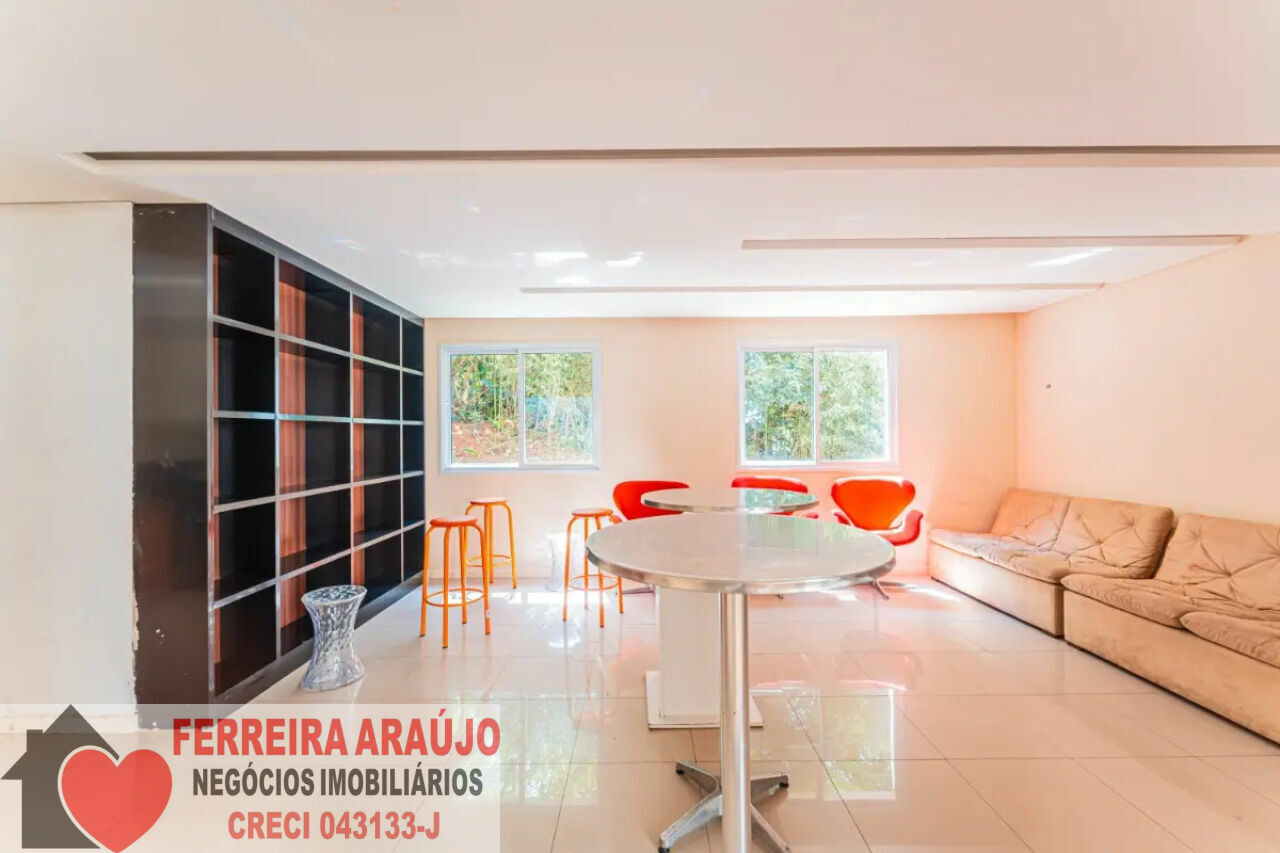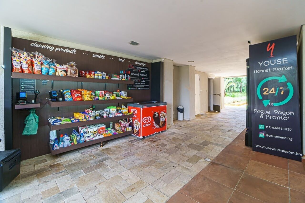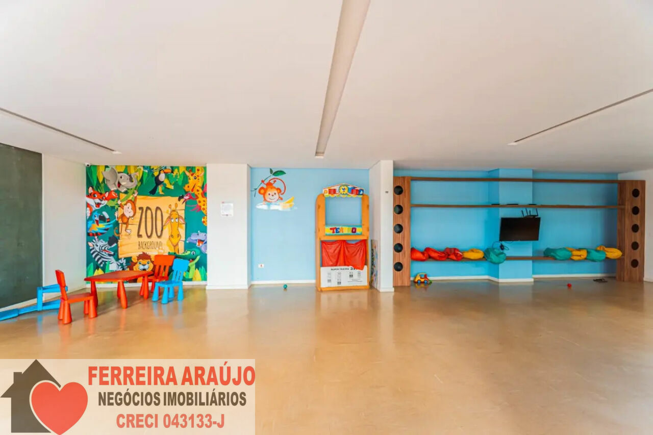 Também conta com quadra poliesportiva, salão de festas infantil, salão de festas adulto, brinquedoteca, pub, espaço gourmet, playground, fireplace, bicicletário, academia completa, lavanderia OMO, mercadinho e portaria eletrônica 24hs.