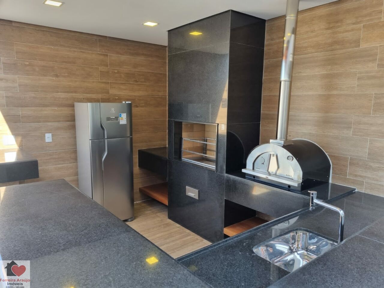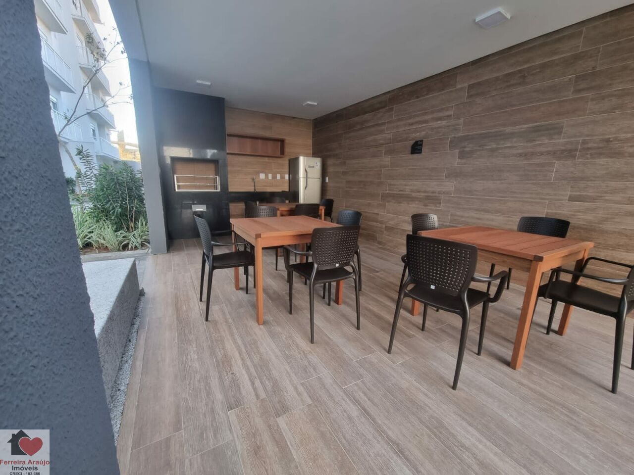 Varanda com espaço Churrasqueira Gourmet e 1 vaga coberta desmarcada.