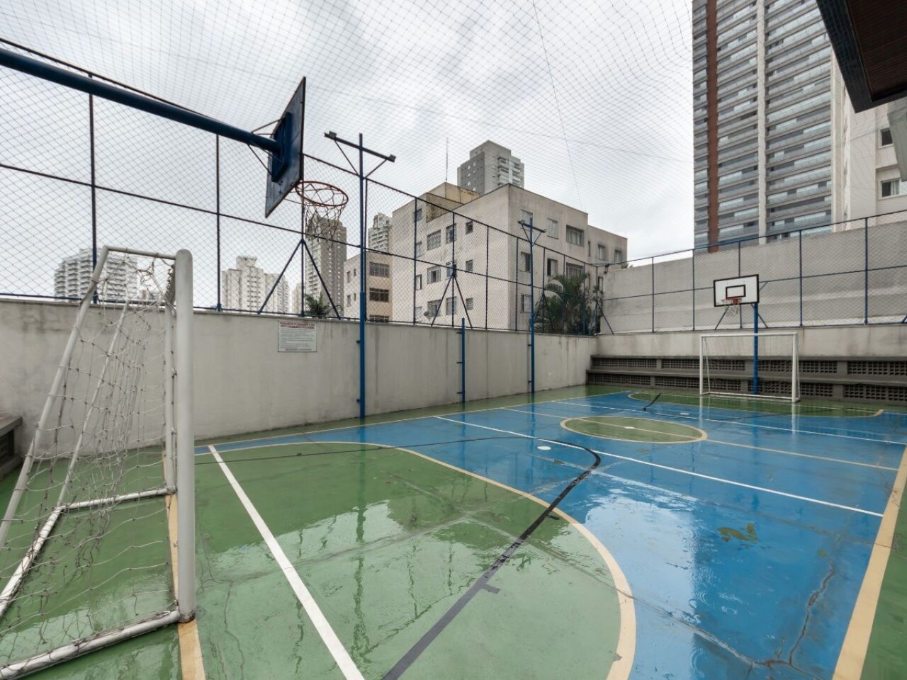 Condomínio com churrasqueira, playground, salão de festas, sala de jogos e quadra poliesportiva, acesso adaptado para deficientes, portaria, câmeras de segurança e proximidade ao transporte público.