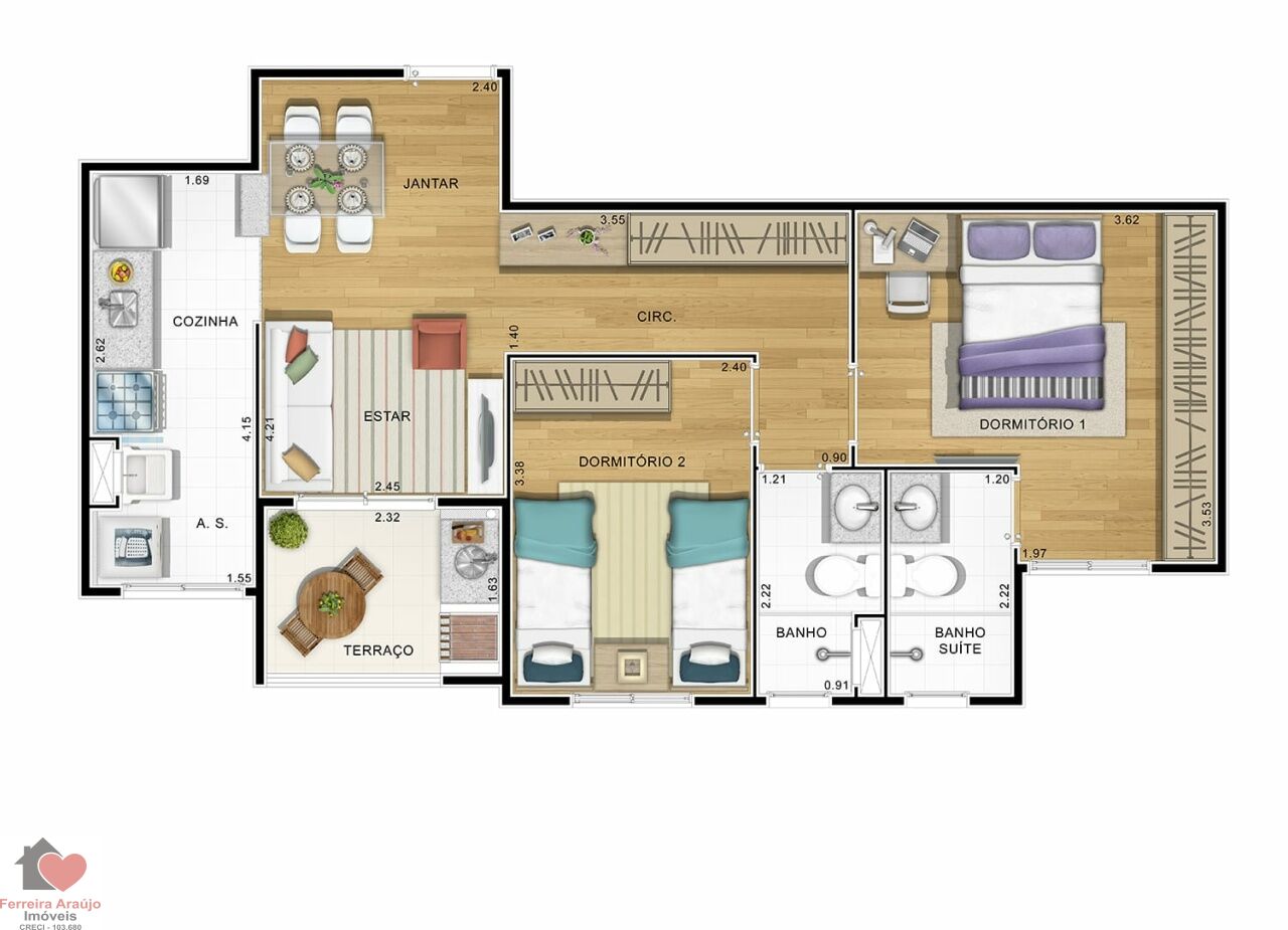 • 60 m² Área Útil