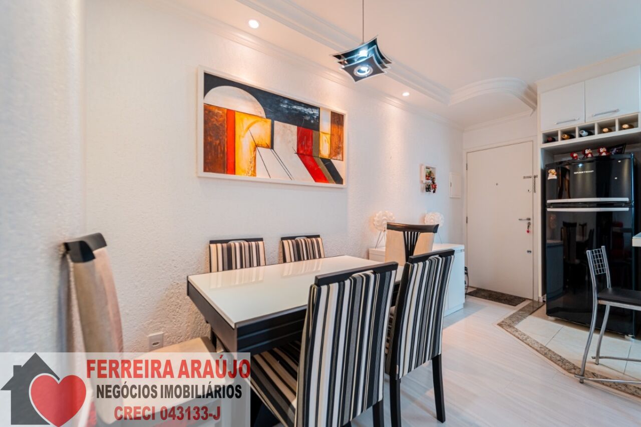 APARTAMENTO COM FINO ACABAMENTO, REPLETO DE ARMÁRIOS, SALA PARA DOIS AMBIENTES, COZINHA AMERICANA. 02 DORMITÓRIOS, SENDO 01 SUÍTE, 02 VAGAS DE GARAGEM.