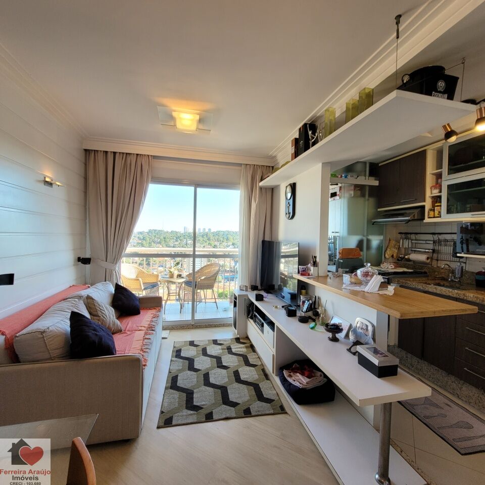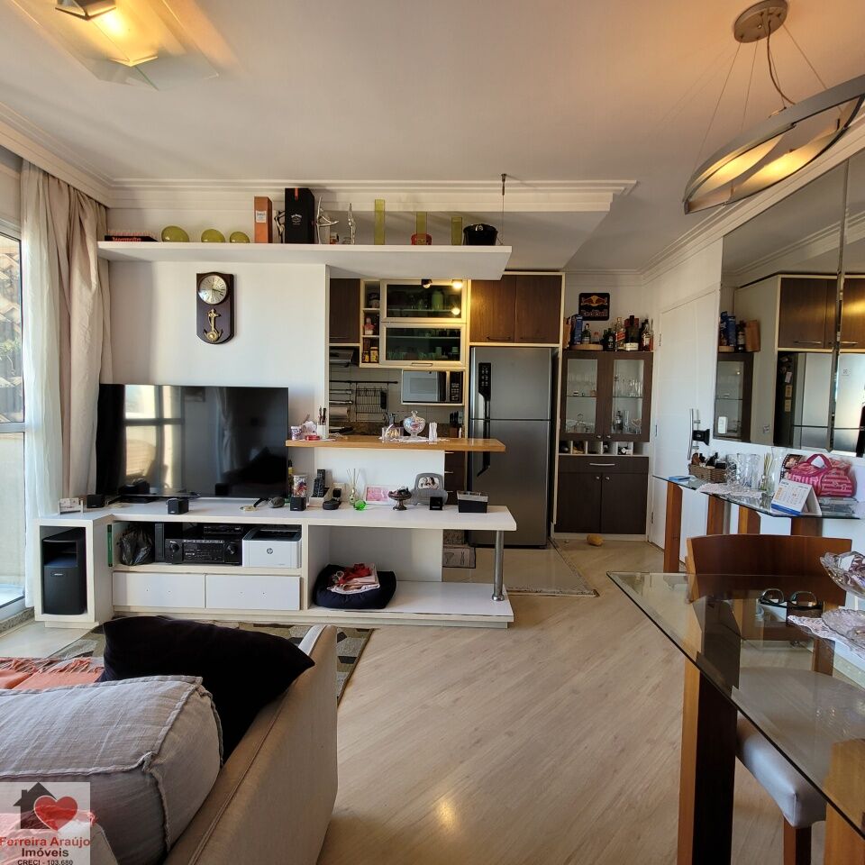 APARTAMENTO COM FINO ACABAMENTO, REPLETO DE ARMÁRIOS, SALA DOIS AMBIENTES, COZINHA AMERICANA, 02 DORMITÓRIOS, 01 VAGA DE GARAGEM.