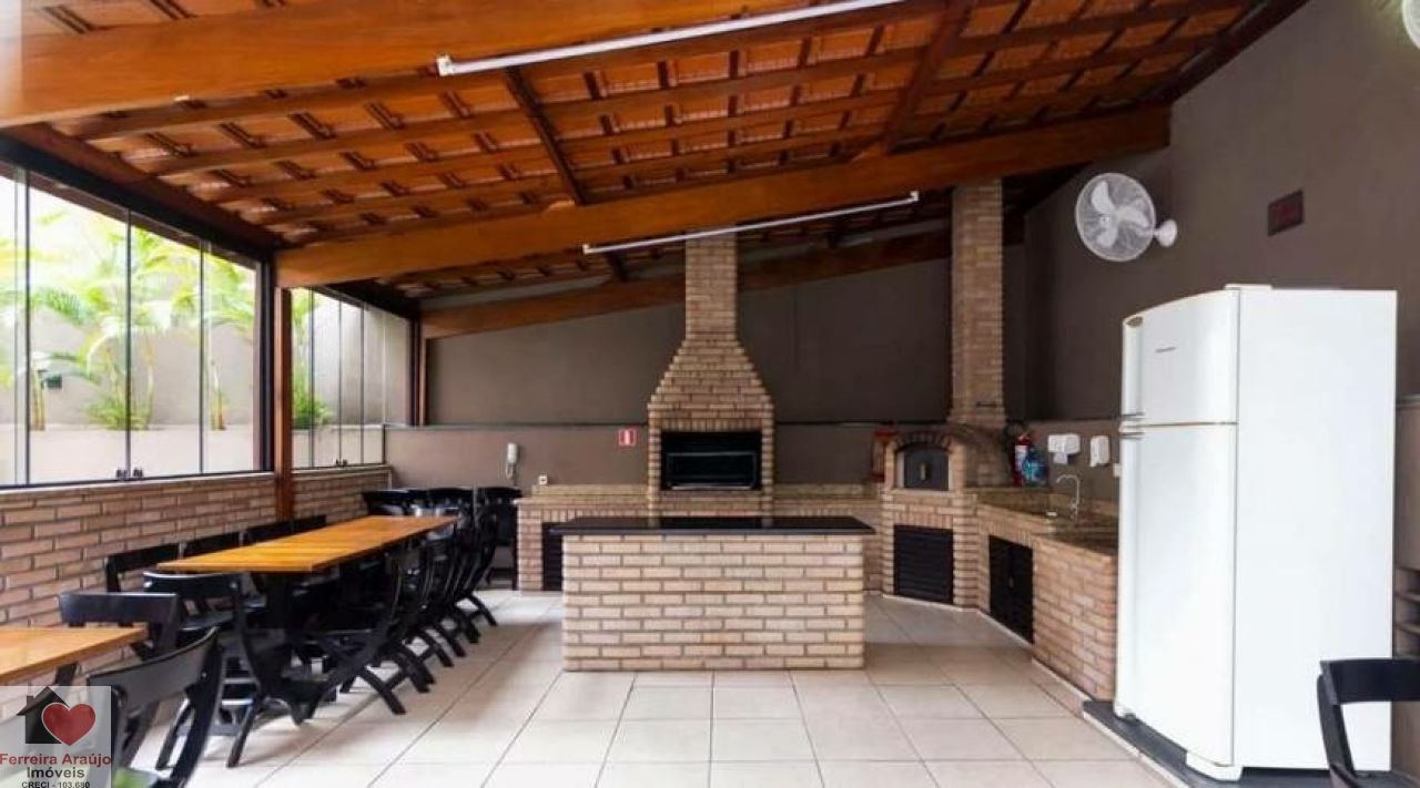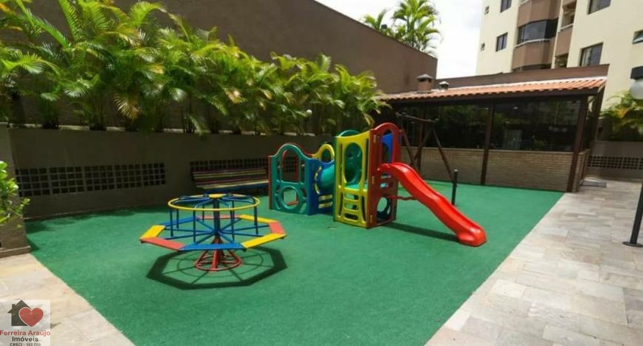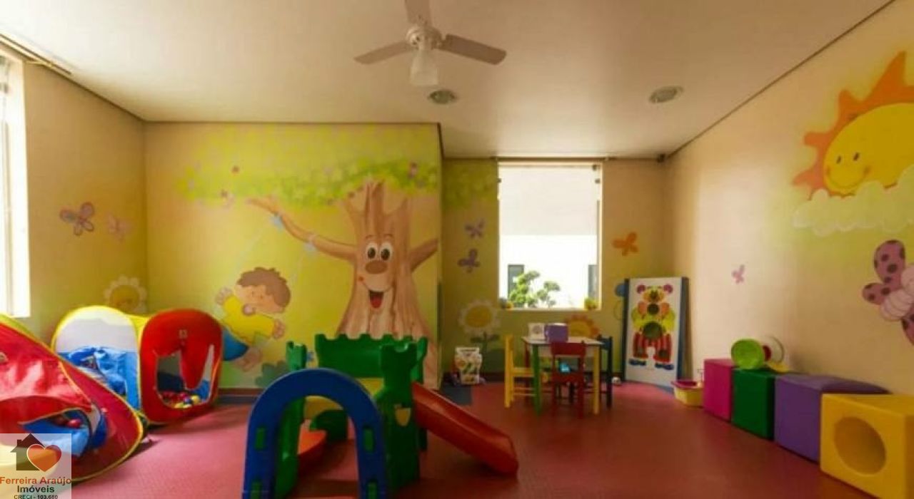 Condomínio com academia, piscina, salão de festas, churrasqueira, playground, segurança 24h, brinquedoteca e quadra esportiva.