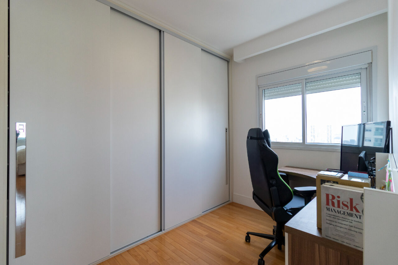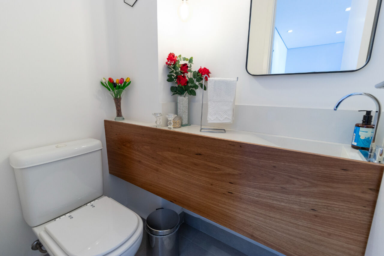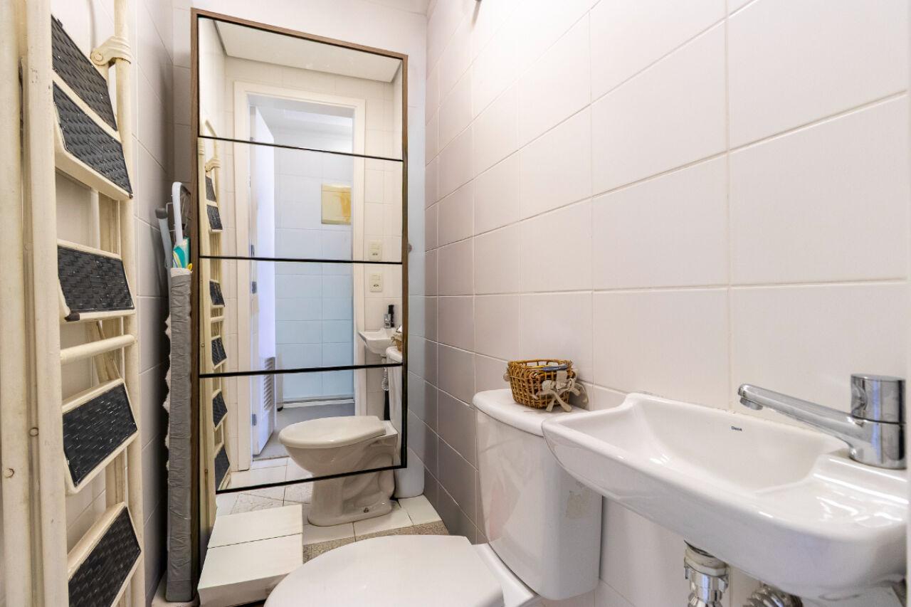 infraestrutura para ar-condicionado. A cozinha é equipada com despensa e depósito, enquanto a área de serviço com banheiro próprio.