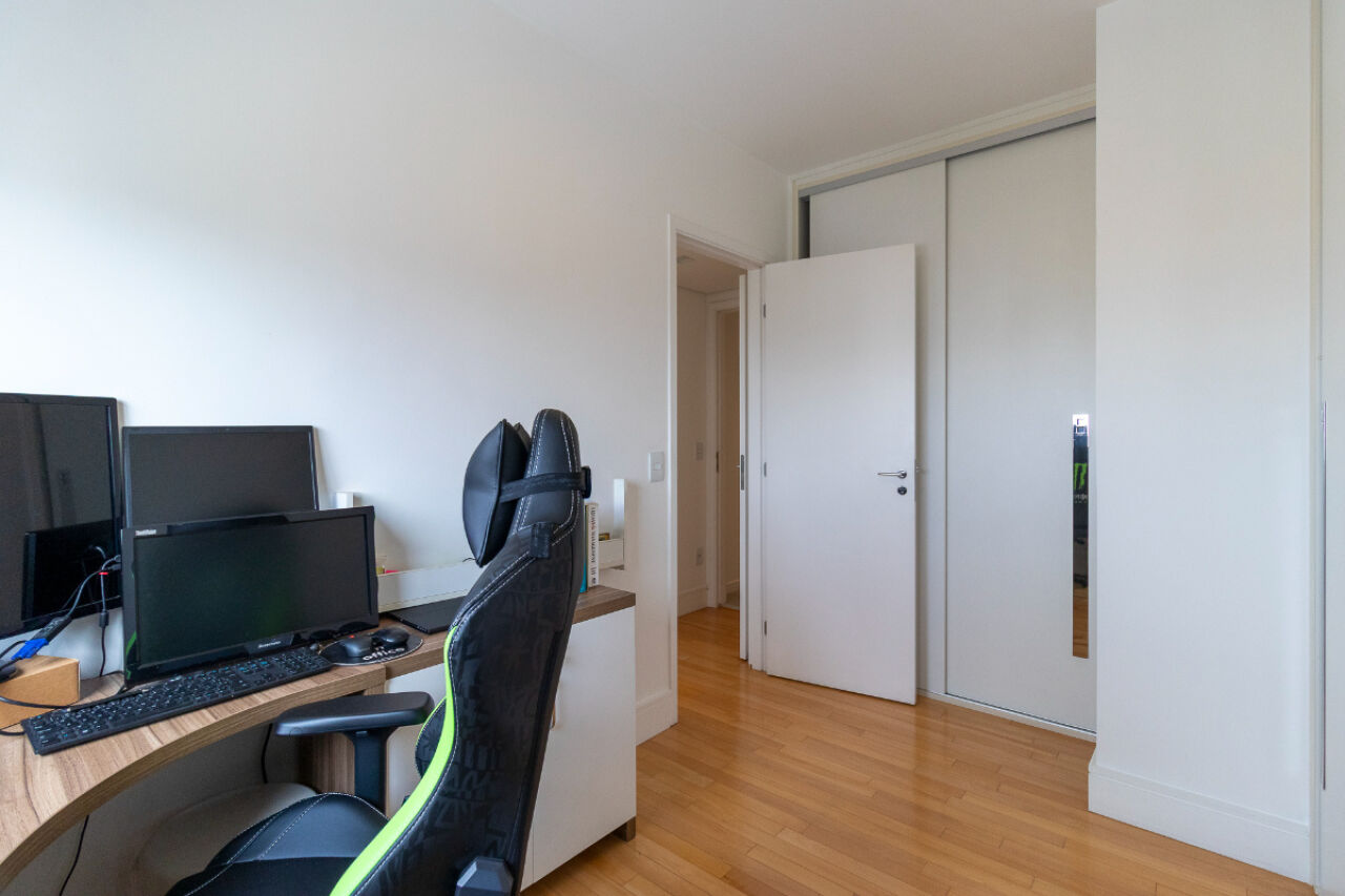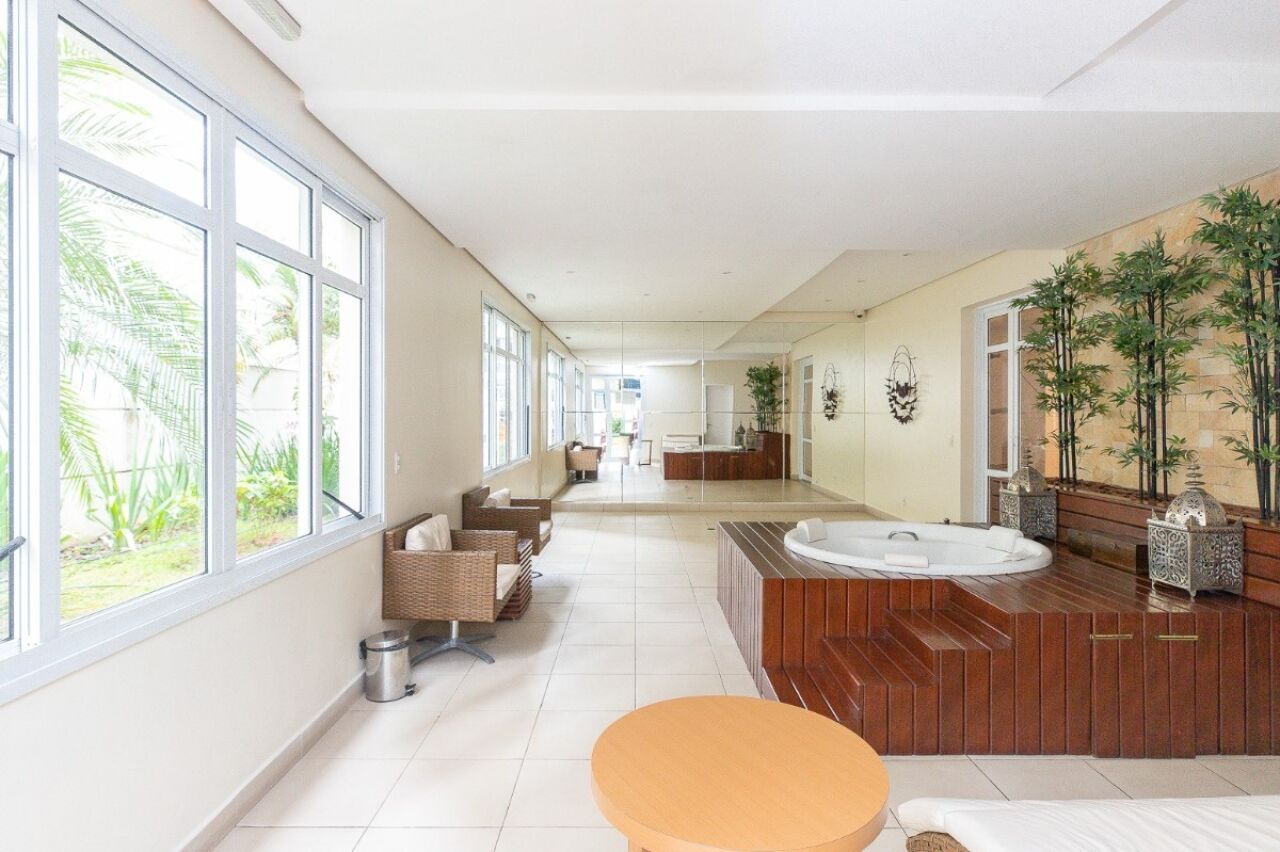 O condomínio oferece lazer completo e estrutura de alto padrão, incluindo piscinas (adulto, aquecida e coberta), spa, ofurô, academia, quadras poliesportiva e de futebol, brinquedoteca, playground, salão de festas, sala de jogos, coworking, espaço beleza, sauna seca e úmida, além de segurança 24h e gerador. São 2 vagas de garagem fixas.