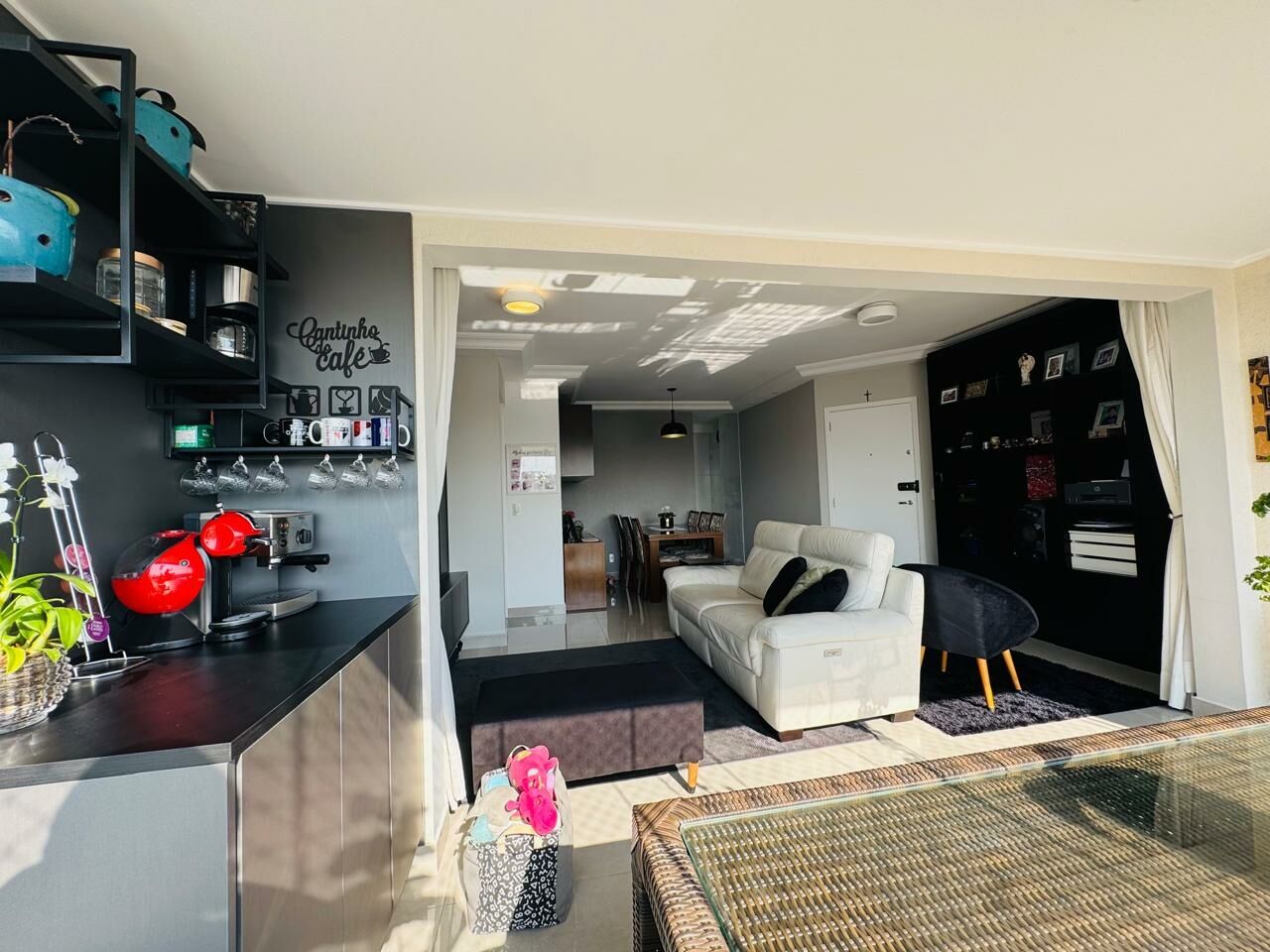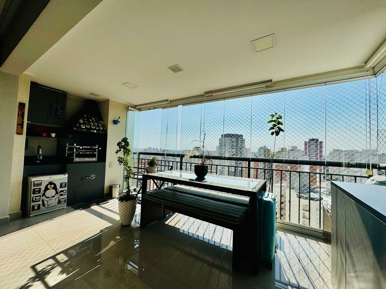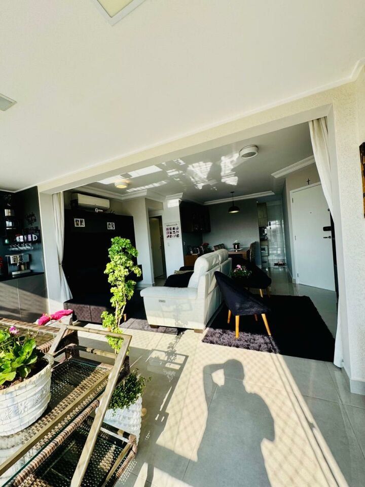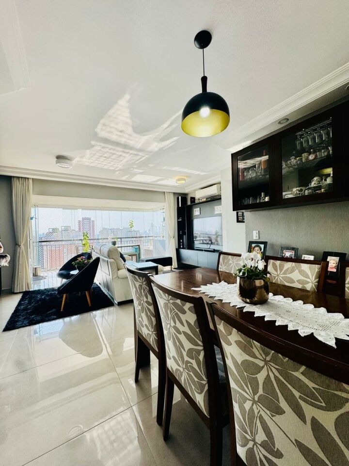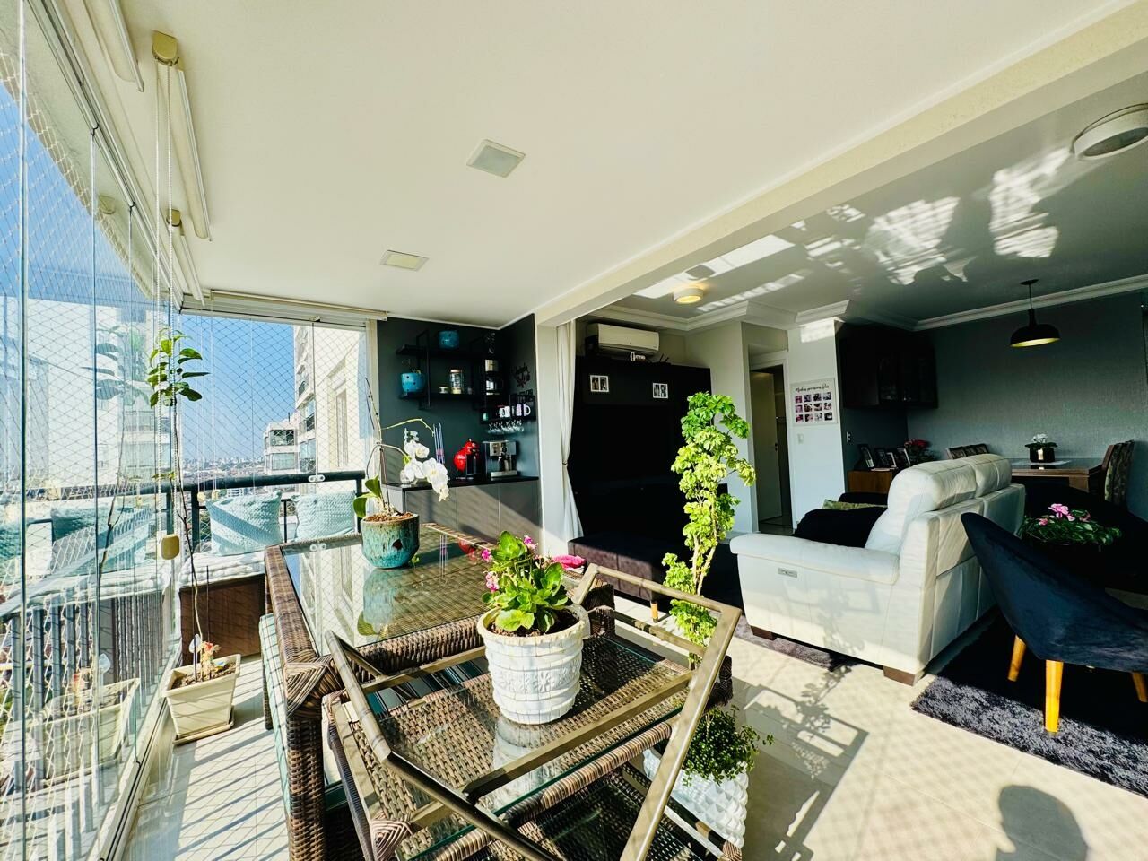 Varanda Gourmet fechada com vidro (ideal para relaxar e receber), criando um ambiente sofisticado e versátil.