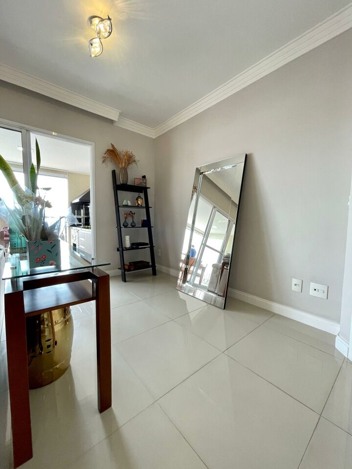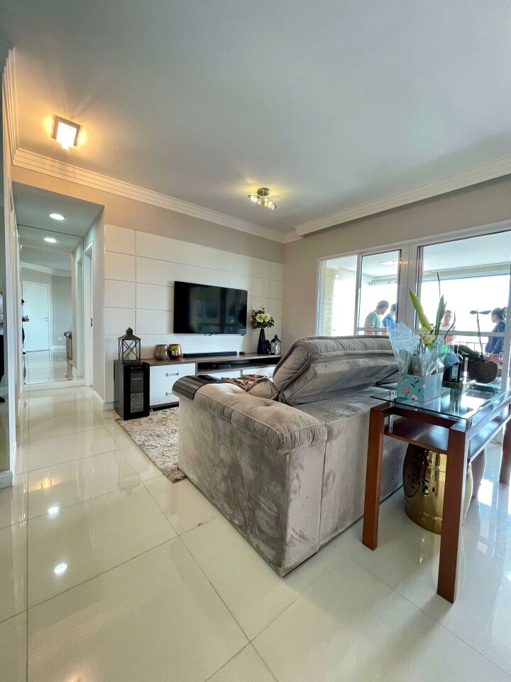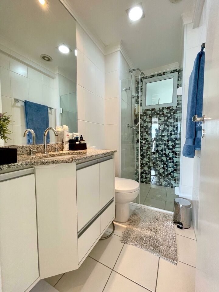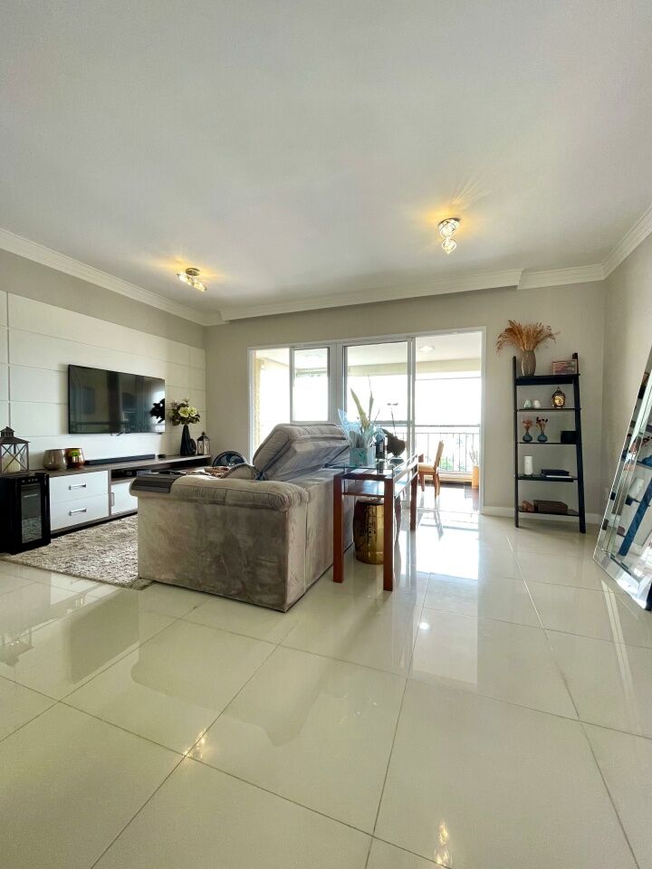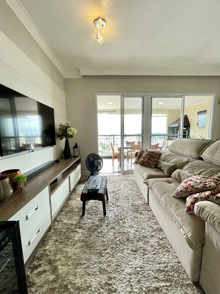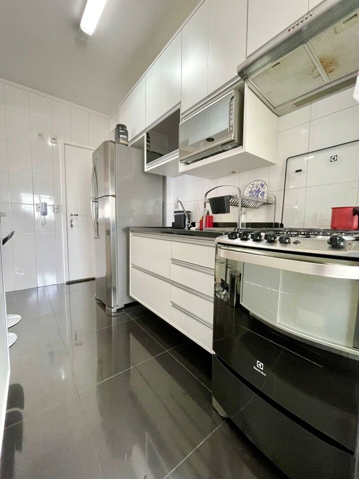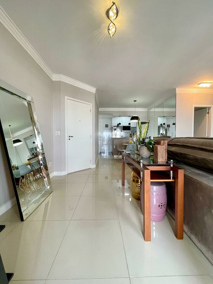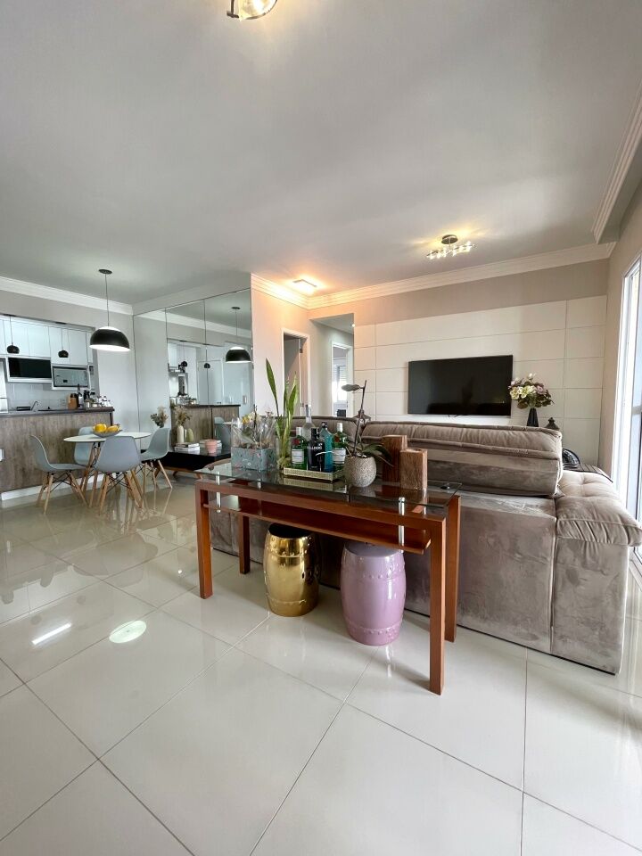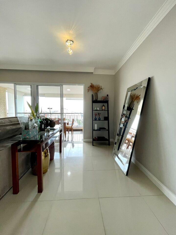 Apartamento com varanda gourmet, moderno, cozinha estilo americana e área de serviço.