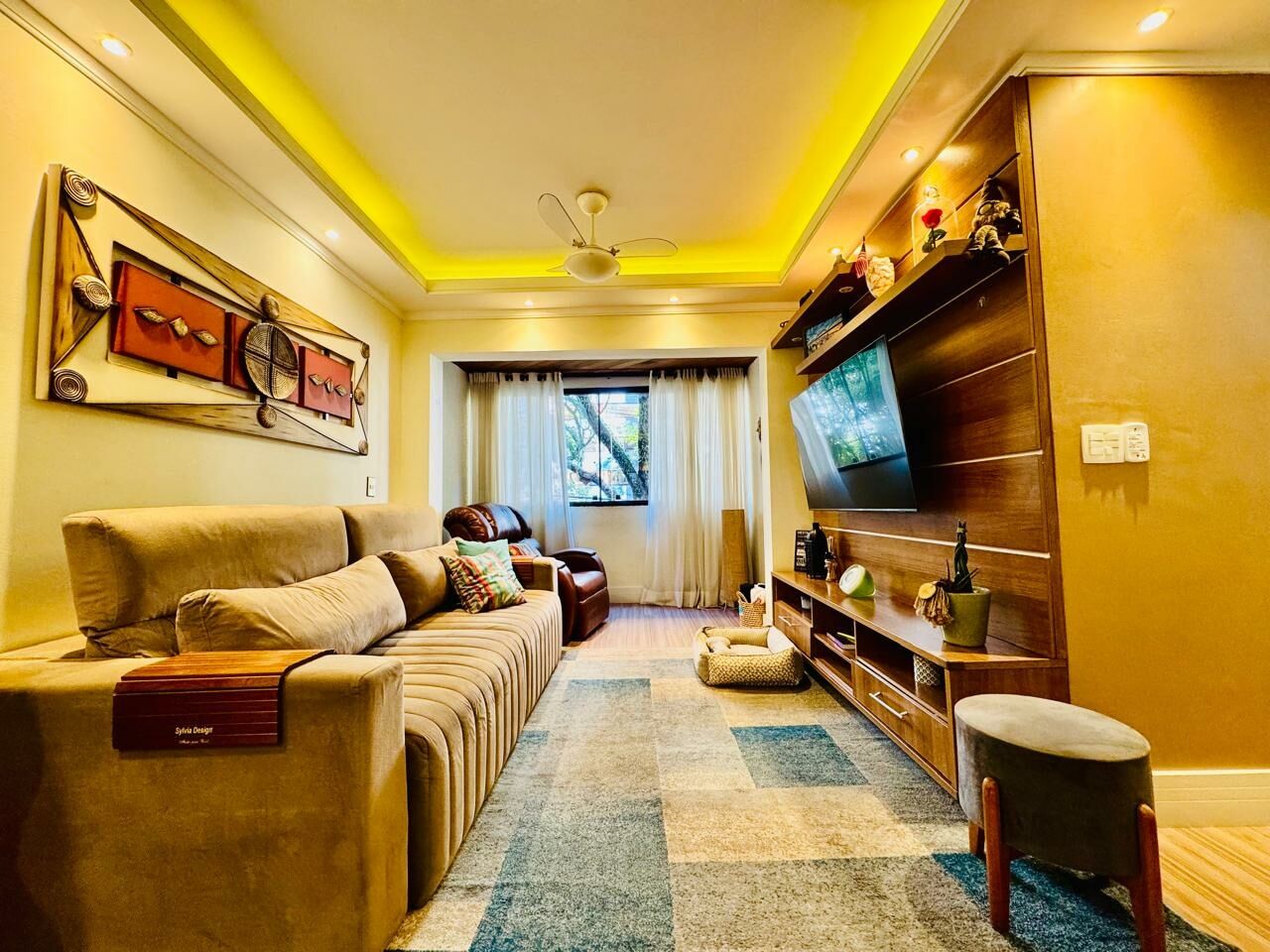 Área Social: Ampla sala de estar e jantar integrada com a varanda, que foi envidraçada, proporcionando um ambiente moderno, com linda vista e abundante luz natural.