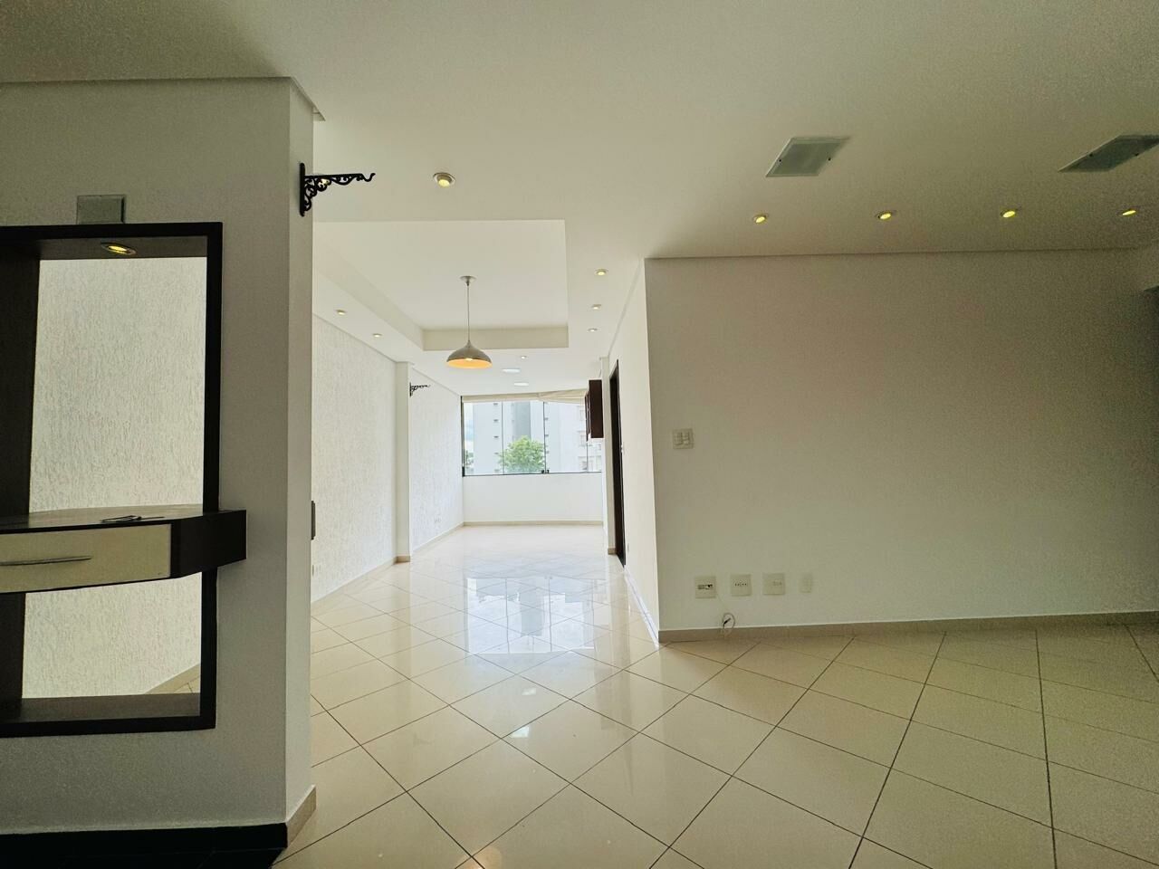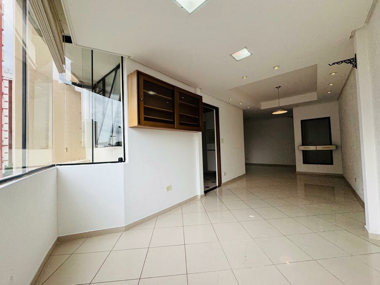 Área Social: Living ampliado para 3 ambientes (estar, jantar e TV), integrado a uma varanda fechada com vidro, proporcionando um espaço de convivência moderno e iluminado.
