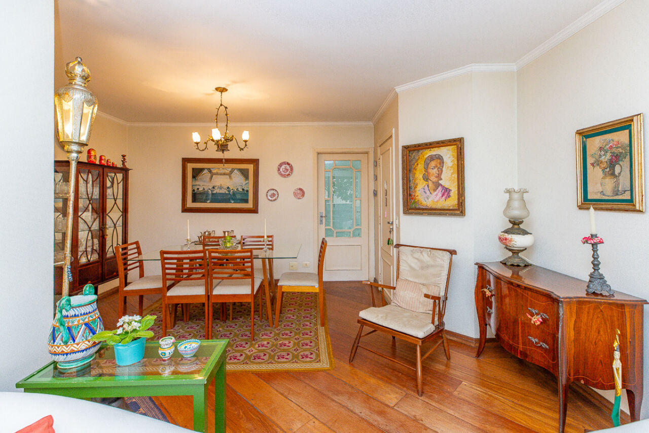Living estendido unindo a sala de estar e jantar, com aquela varanda clássica e super funcional.