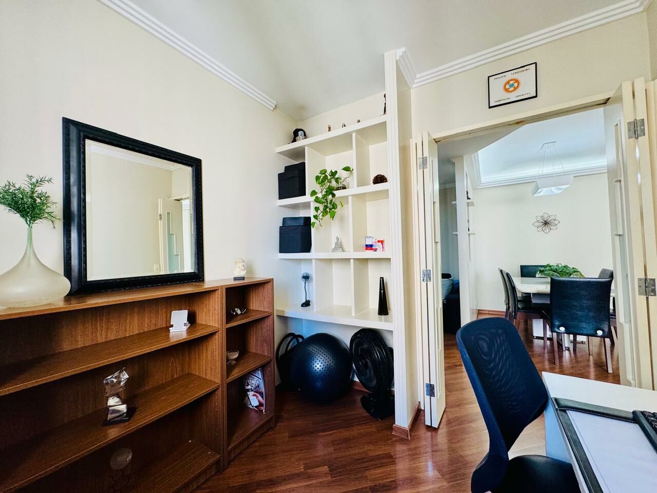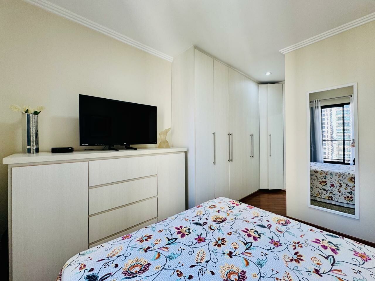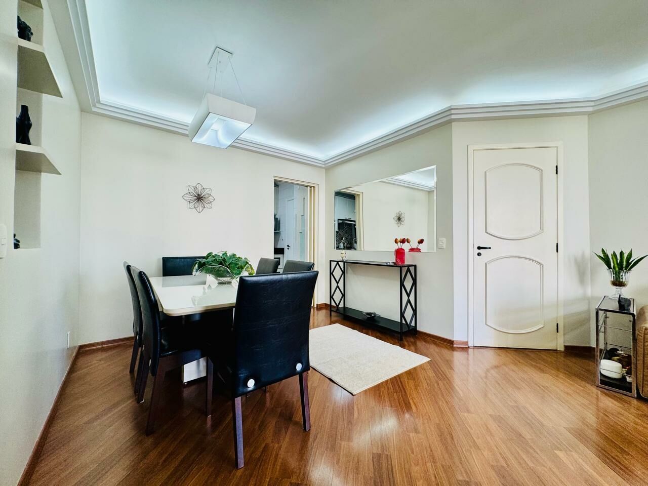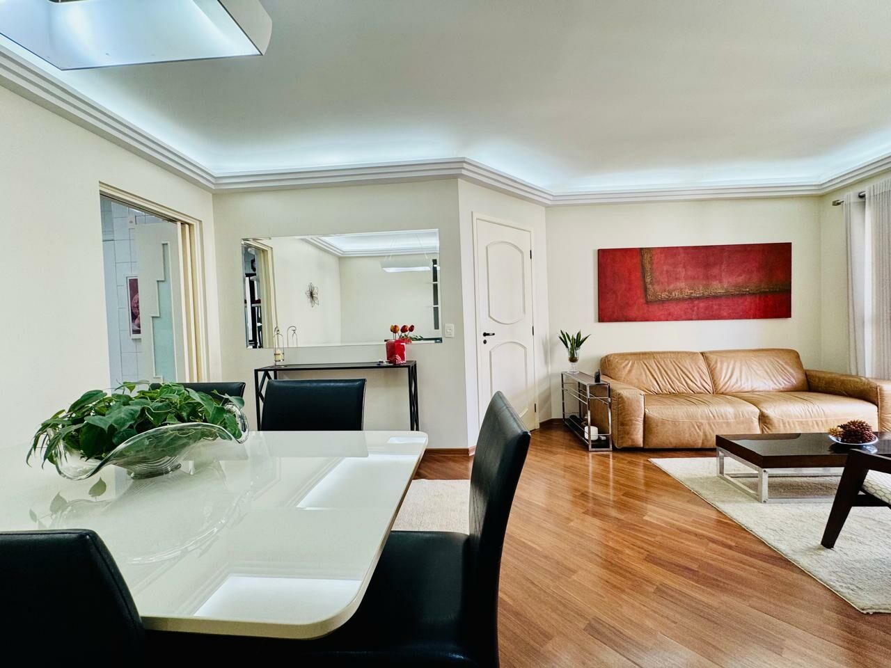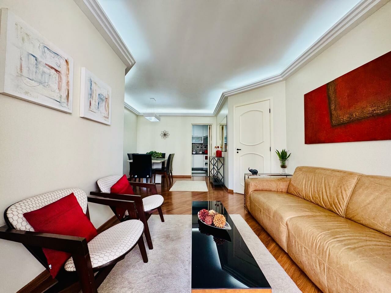 Planta Customizada: Originalmente com 4 dormitórios, foi inteligentemente atualizado para 3 dormitórios (1 suíte), privilegiando a amplitude da sala de TV.