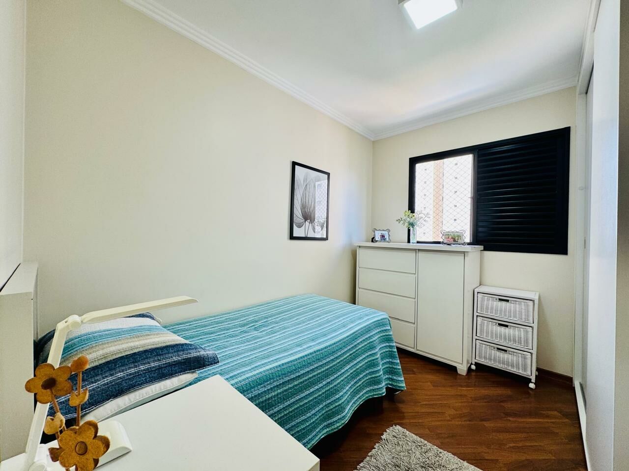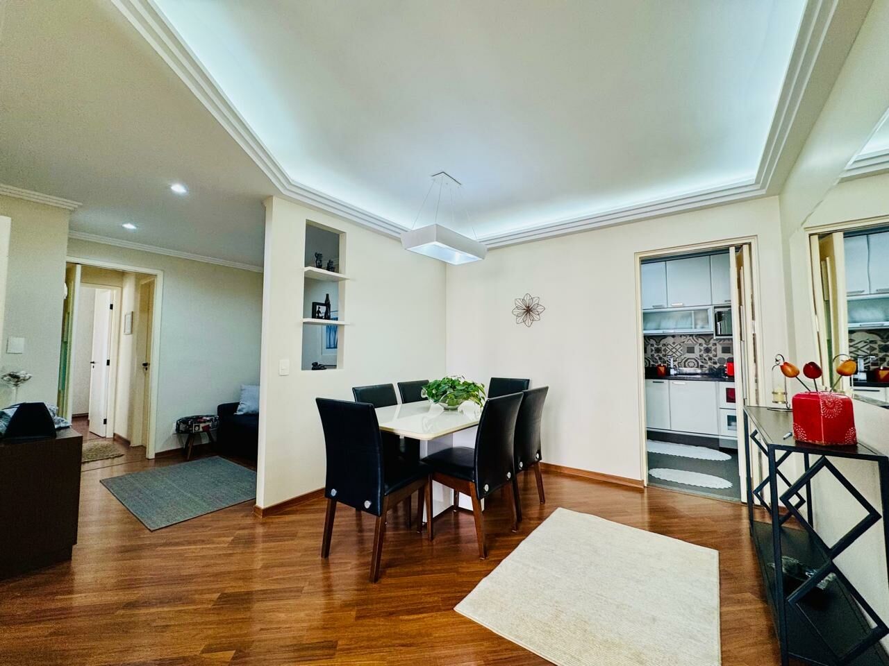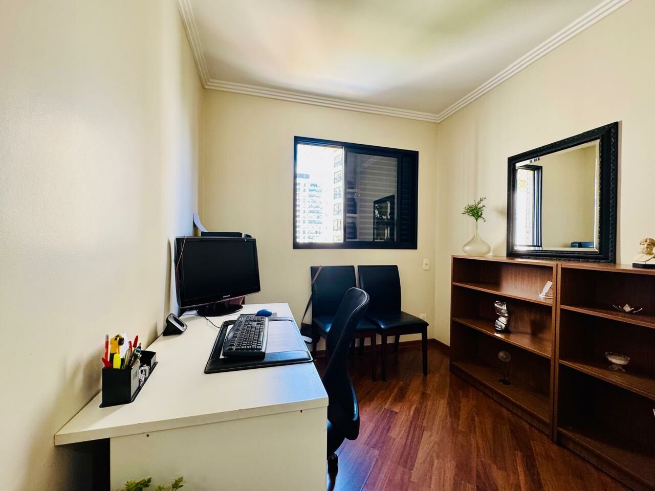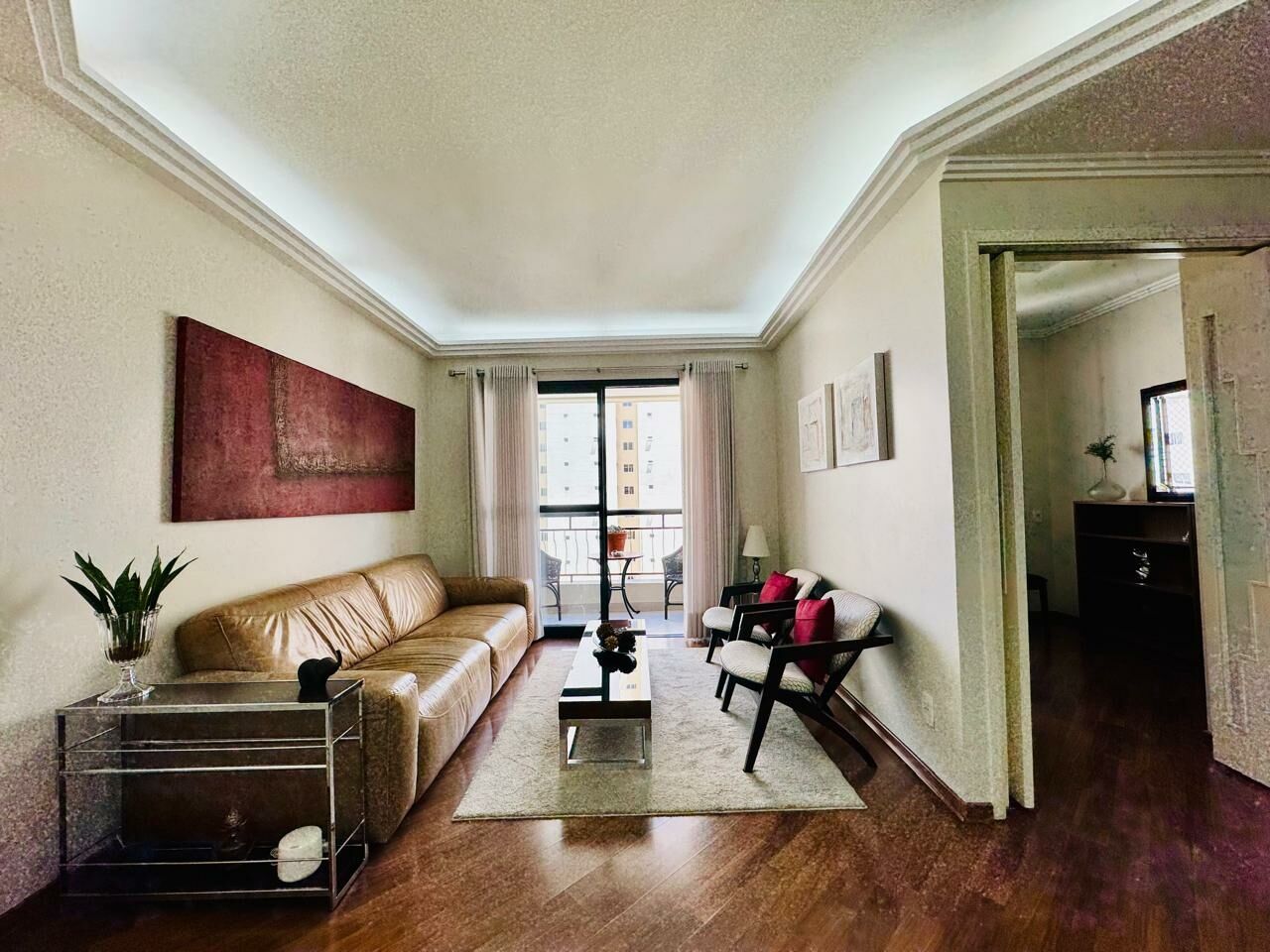 Planta Customizada: Originalmente com 4 dormitórios, foi inteligentemente atualizado para 3 dormitórios (1 suíte), privilegiando a amplitude da sala de TV.