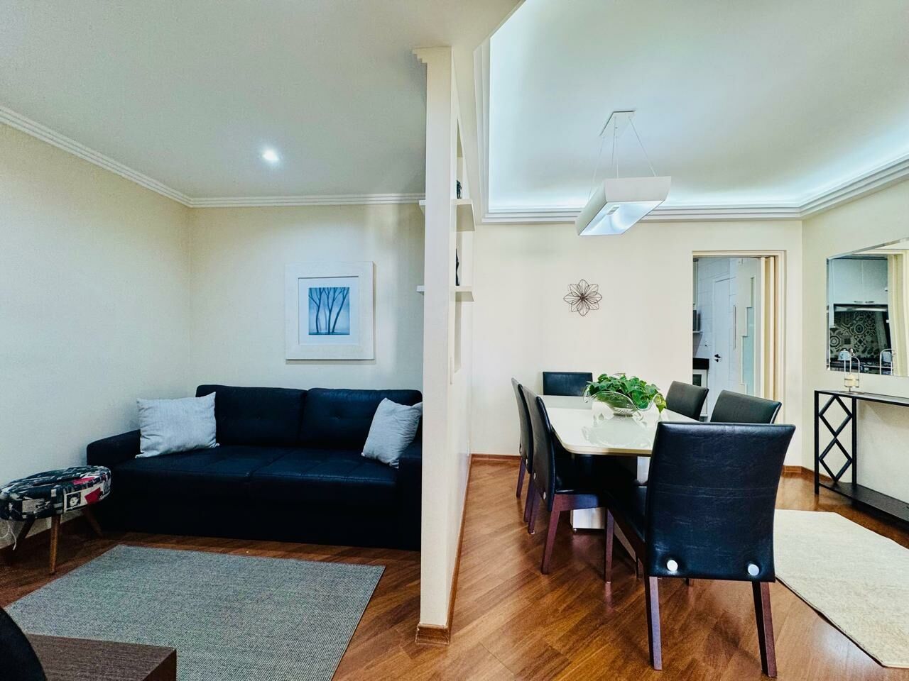 Living Amplo: Sala para 2 ambientes com excelente iluminação natural e integração com a varanda.