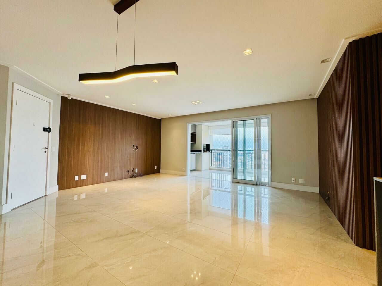 Living: Ampla sala para 3 ambientes, ampliada e integrada com a varanda, com piso nivelado, mantendo porta de divisão para maior versatilidade.