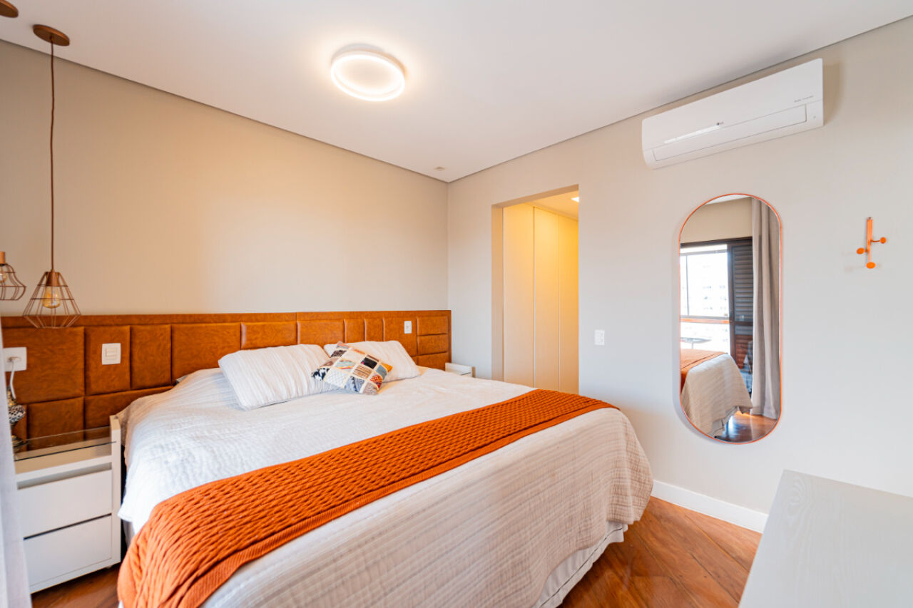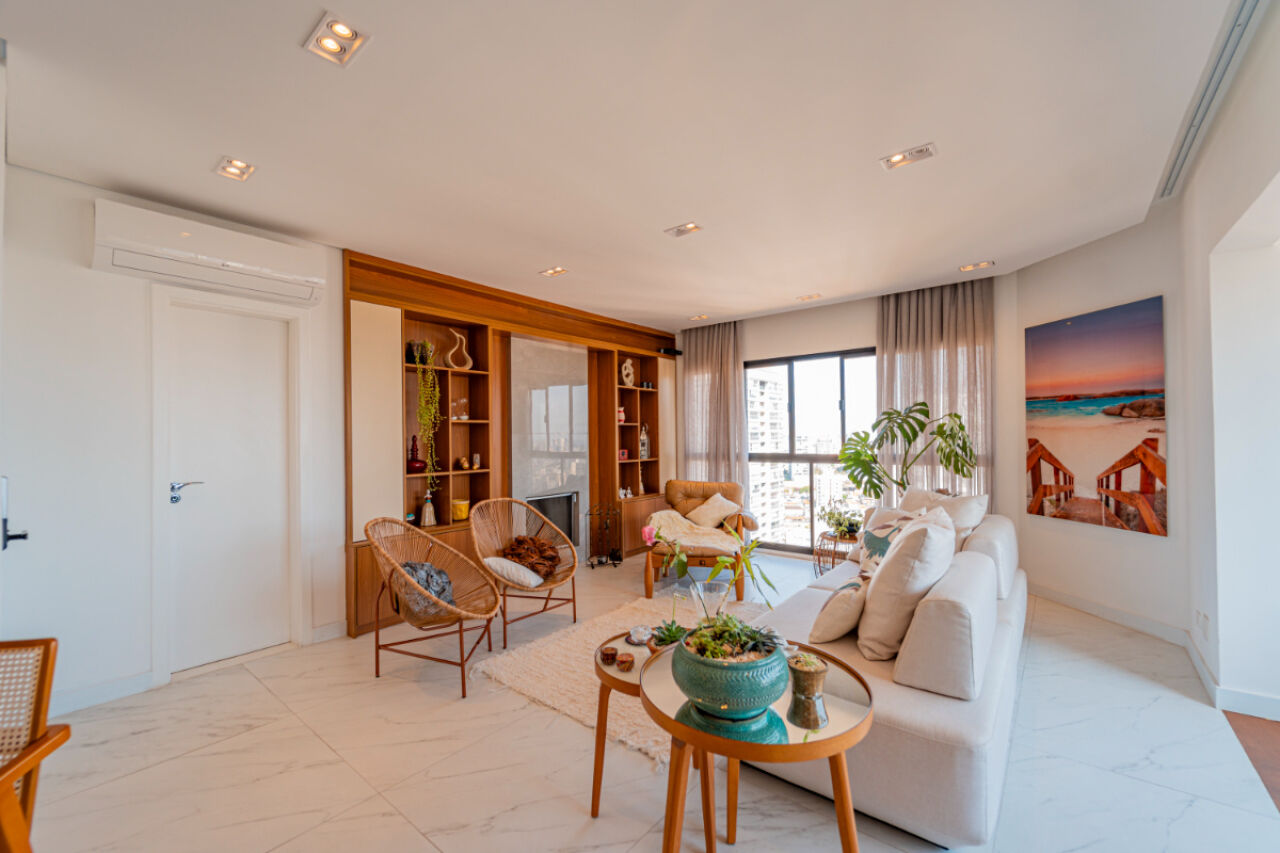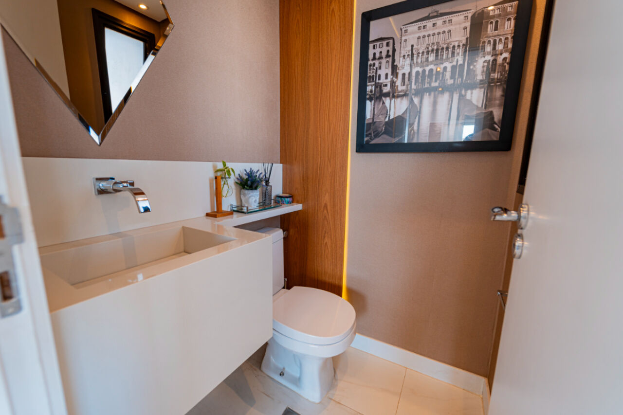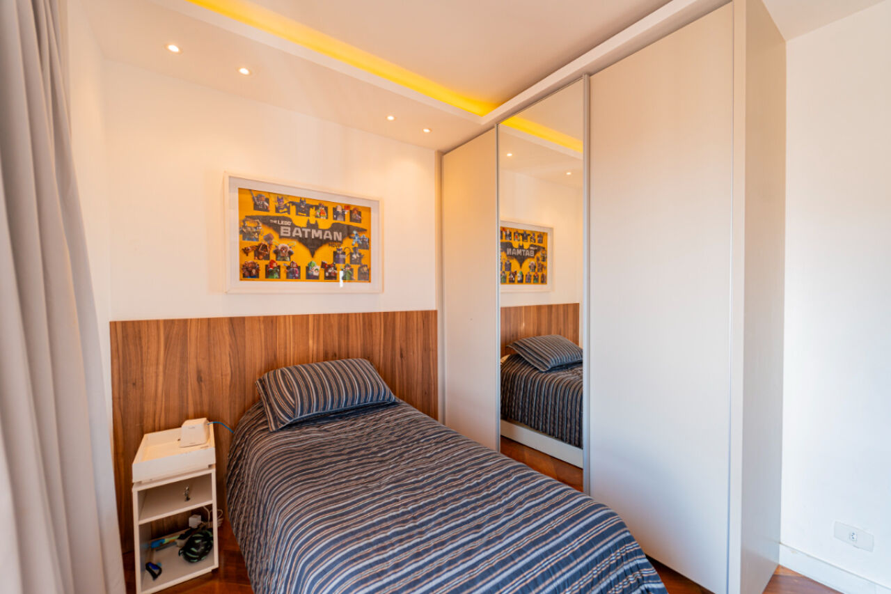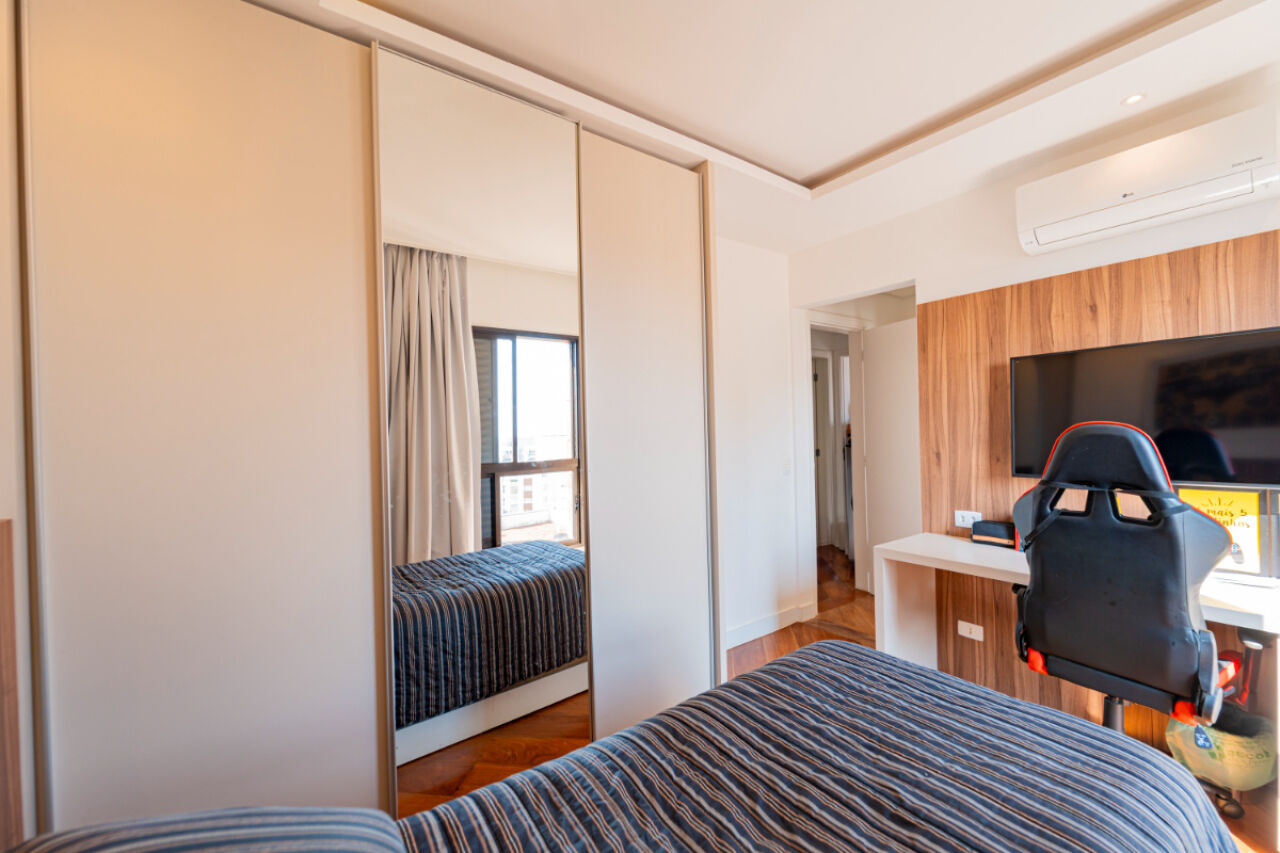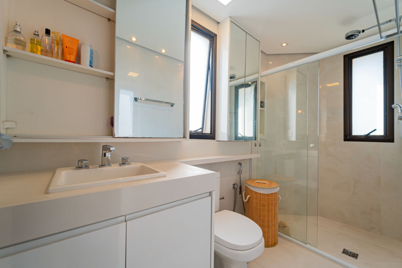 Apartamento com fino acabamento , Andar alto com excelente vista! Na melhor localização, na melhor rua do bairro. 3 vagas de garagem. Acabamento impecável. Elevador privativo com senha. Bem iluminado com janelas amplas. Planta de 3 dormitórios, 3 suítes, sendo uma master, com varanda . Armários embutidos em todos os quartos. Sala de estar com 2 ambientes com projeto de iluminação. A sala de estar tem lareira e varanda fechada com vidro. Lavabo . Sala íntima adicional projetada como sala de TV. Cozinha planejada repleta de armários. Total de 5 banheiros. Área de serviço espaçosa com armários. Dependência de empregada com banheiro. Lazer com piscina climatizada, salão de festas, academia, playground, sala de jogos, churrasqueira e brinquedoteca. Prédio com gerador. Aquecimento a gás.