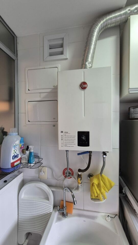Muito arejada e clara, com janelas em alumínio, possui armários, tanque e aquecedor com porta de separação da cozinha e instalação de lava-louça.