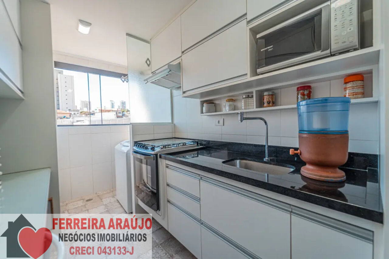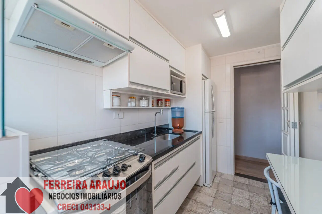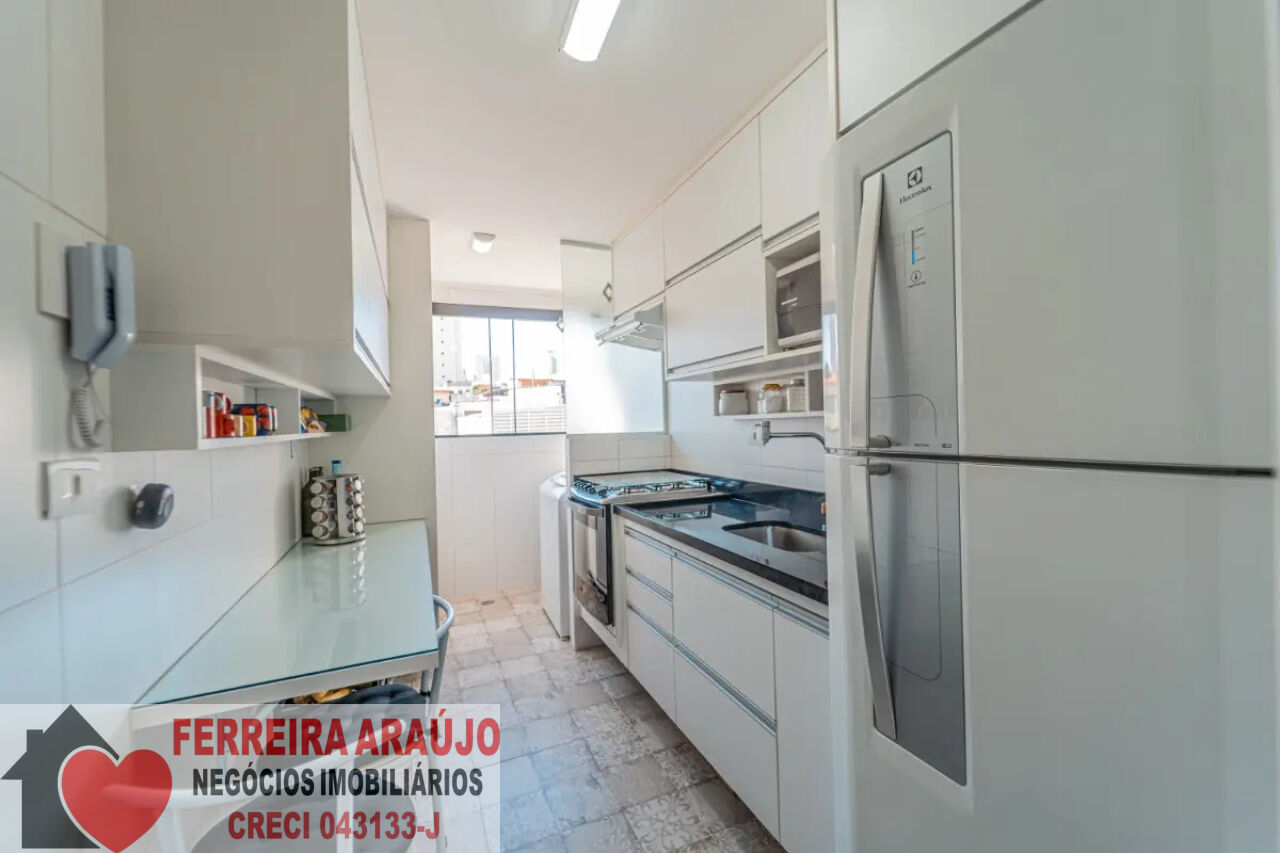 Quando entramos no apartamento, do lado direito temos a cozinha. Repleta de armários planejados em perfeito estado, é integrada com a área de serviço.