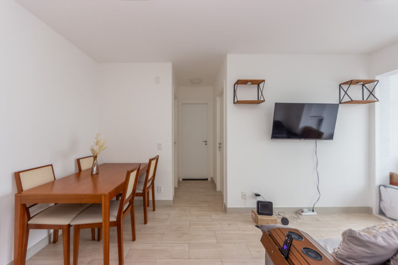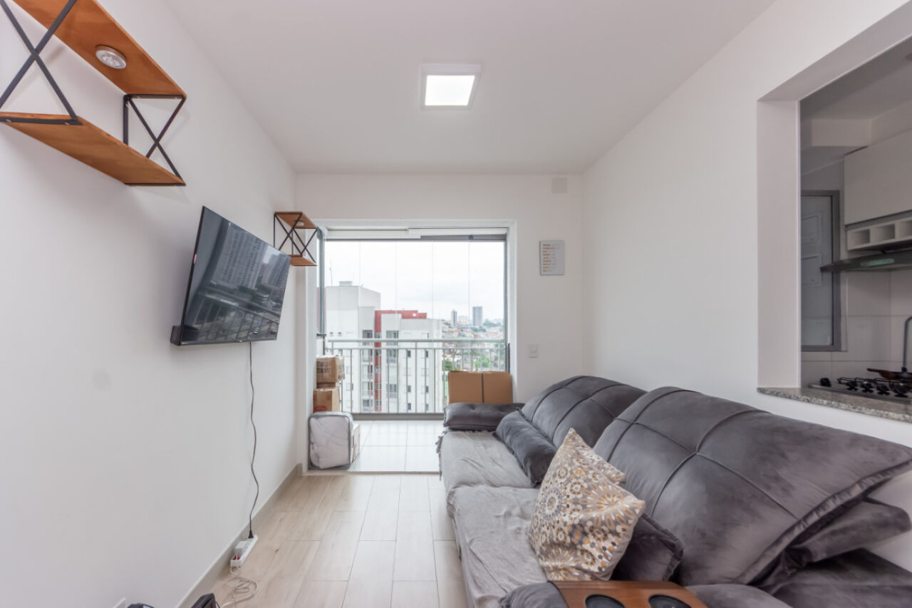 Sala ampla e aconchegante com sacada e fechadura eletrônica, cozinha planejada e 100% montada, banheiro com planejados, lavanderia grande e funcional, sacada ampla, perfeita para reunir amigos e família e vaga de garagem para 1 carro.