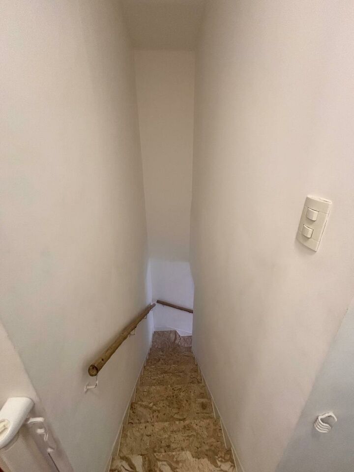 Ainda dispõe de um lavabo sob a escada que dá acesso ao piso superior, em direção à cozinha.