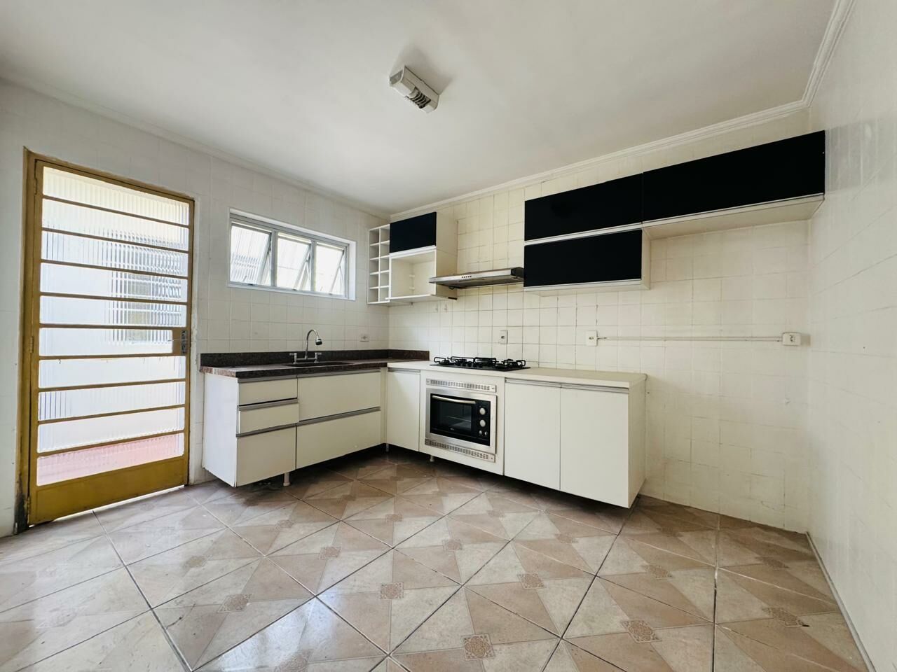 Cozinha com espaço de sobra para criar suas refeições.
