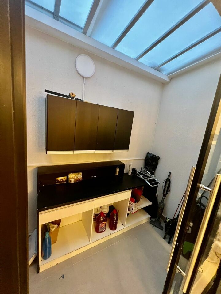 Porcelanato em todos os ambientes, sendo sala, terraço, banheiros e cozinha.