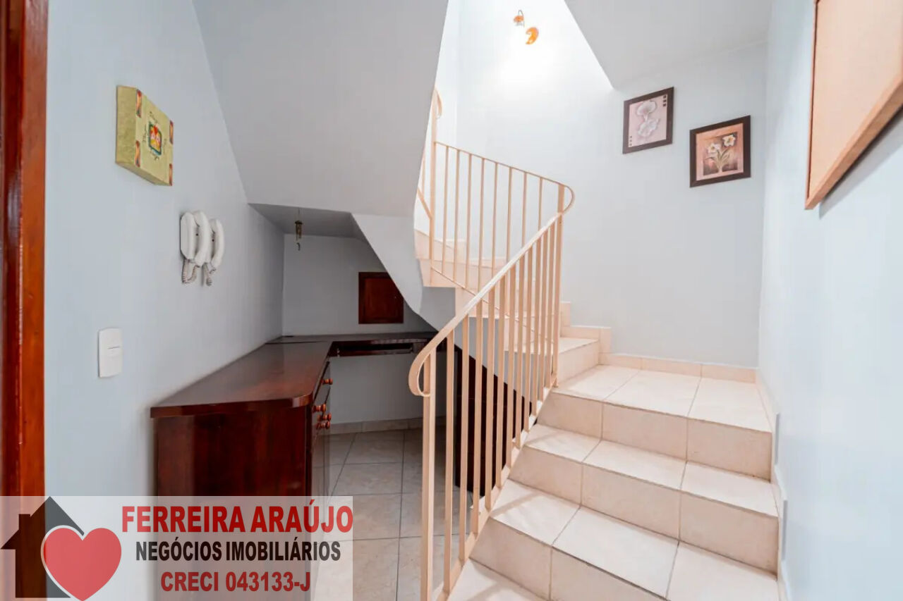 O piso superior possui 3 dormitórios amplos, com armários embutidos, incluindo 1 suíte e banheiro social.