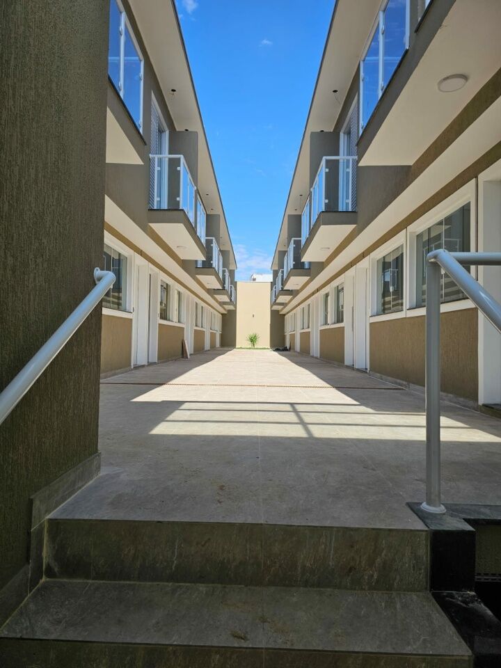 Possui 2 suítes, sendo a frontal equipada com sacada. A parte inferior inclui um living aberto que acomoda até três ambientes, além de um lavabo e um pequeno quintal nos fundos com lavanderia, possibilitando a construção de churrasqueira. Os imóveis contam ainda com duas vagas de garagem e um depósito localizado no subsolo, entregues com piso de porcelanato na área do living e nos dormitórios, enquanto os demais espaços são entregues no contrapiso.