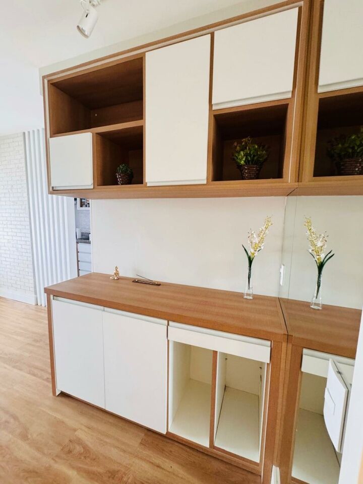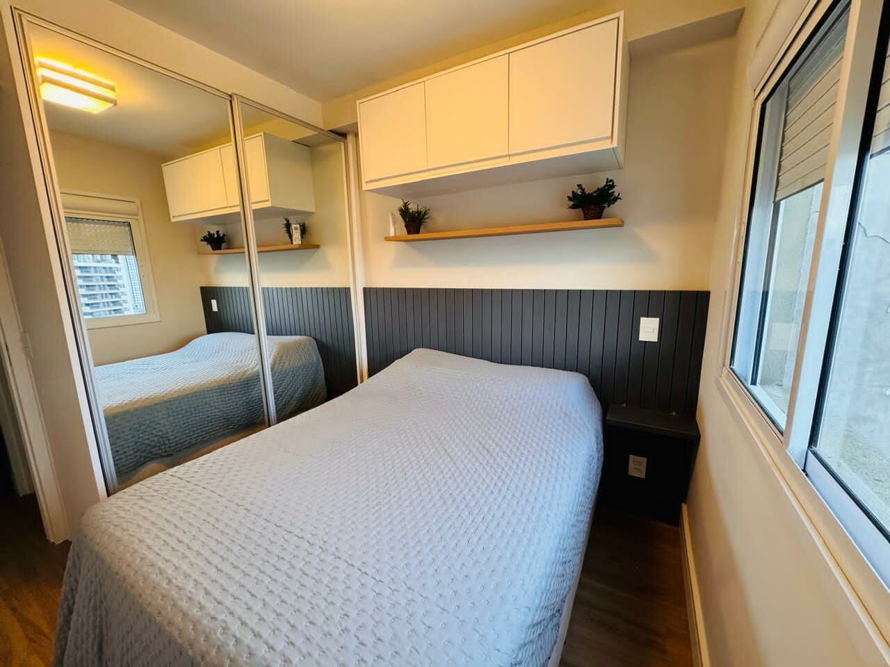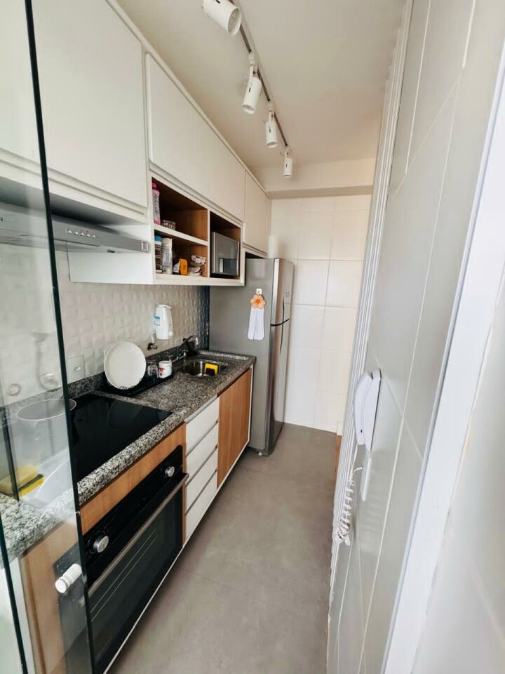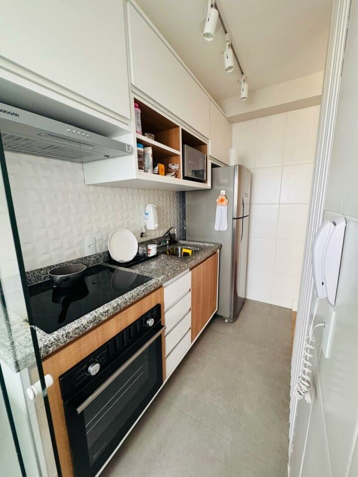 APARTAMENTO COM FINO ACABAMENTO, REPLETO DE ARMÁRIOS, SALA PARA DOIS AMBIENTES, VARANDA, COZINHA TIPO AMERICANA, 01 DORMITÓRIO, 01 BANHEIRO, 01 VAGA DE GARAGEM.