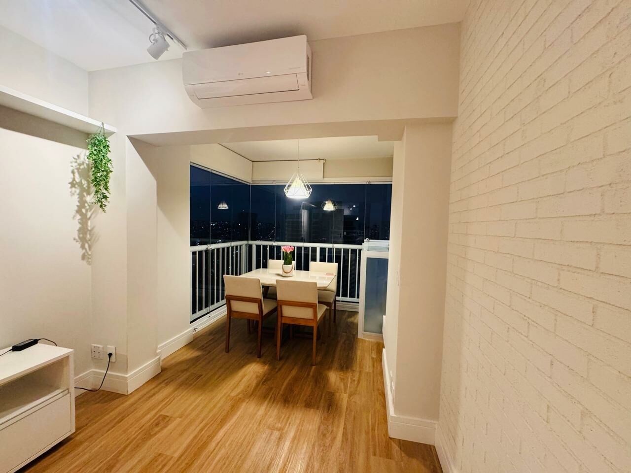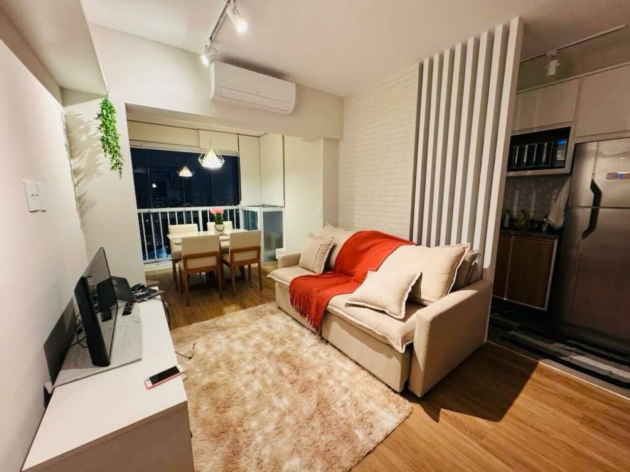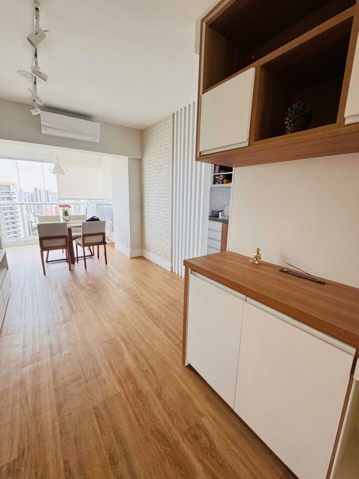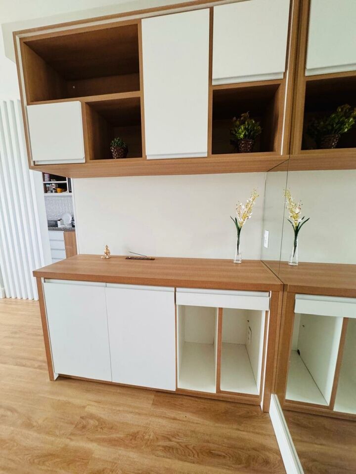 APARTAMENTO COM FINO ACABAMENTO, REPLETO DE ARMÁRIOS, SALA PARA DOIS AMBIENTES, VARANDA, COZINHA TIPO AMERICANA, 01 DORMITÓRIO, 01 BANHEIRO, 01 VAGA DE GARAGEM.