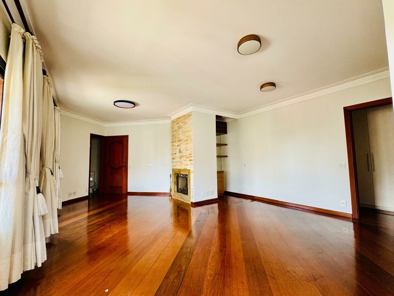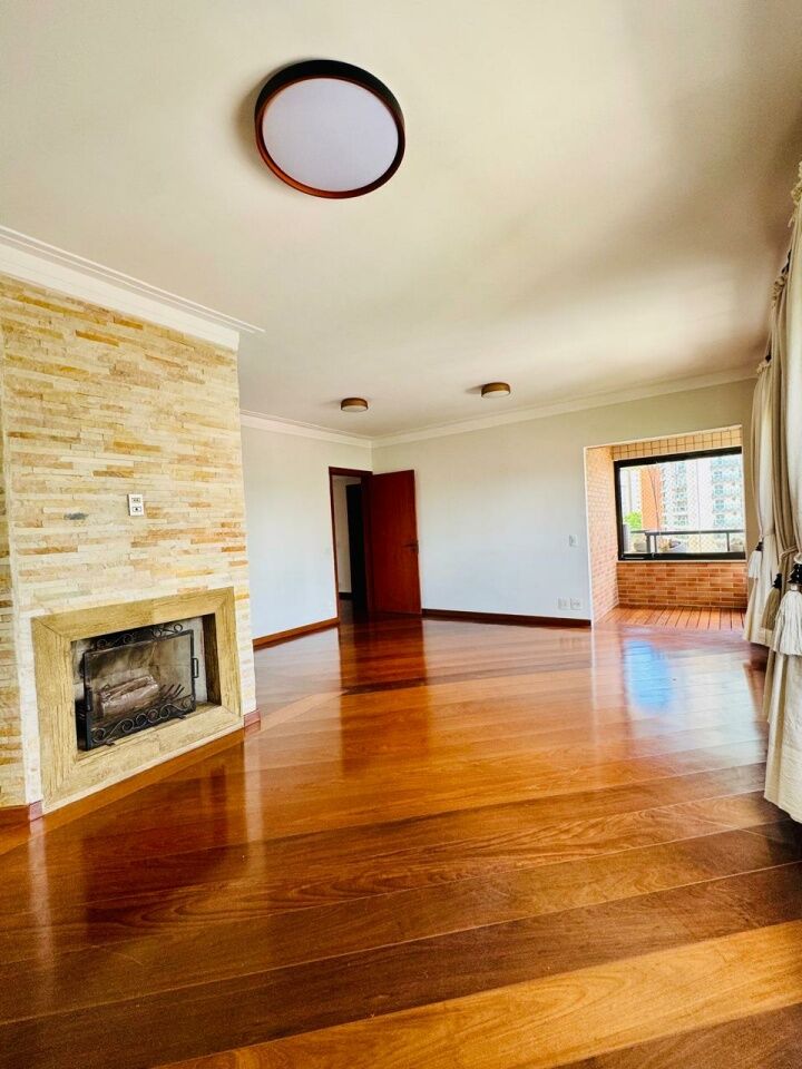 Área Social: Sala para dois ambientes equipada com lareira e ar-condicionado, integrada a uma excelente varanda e lavabo.
