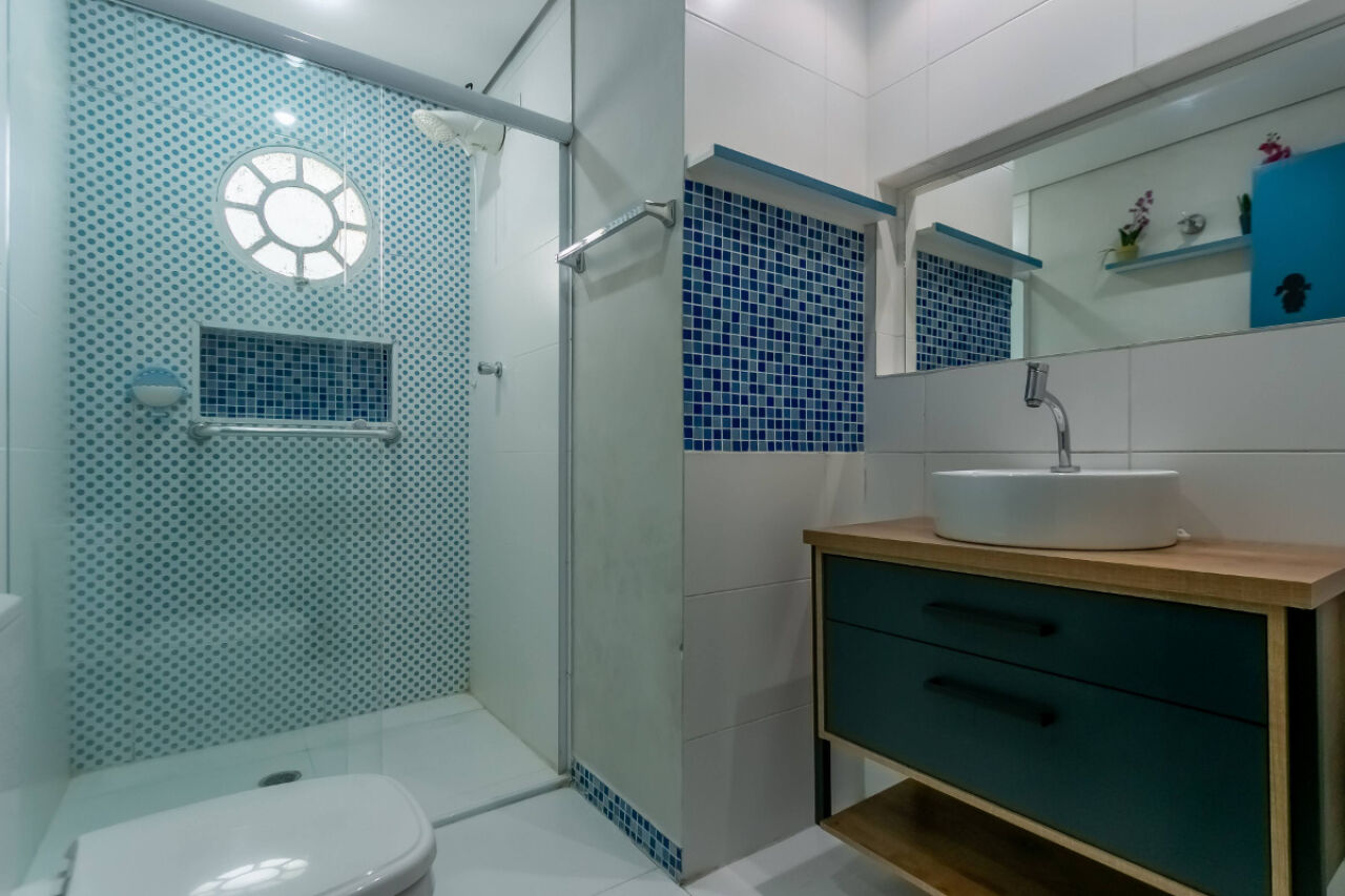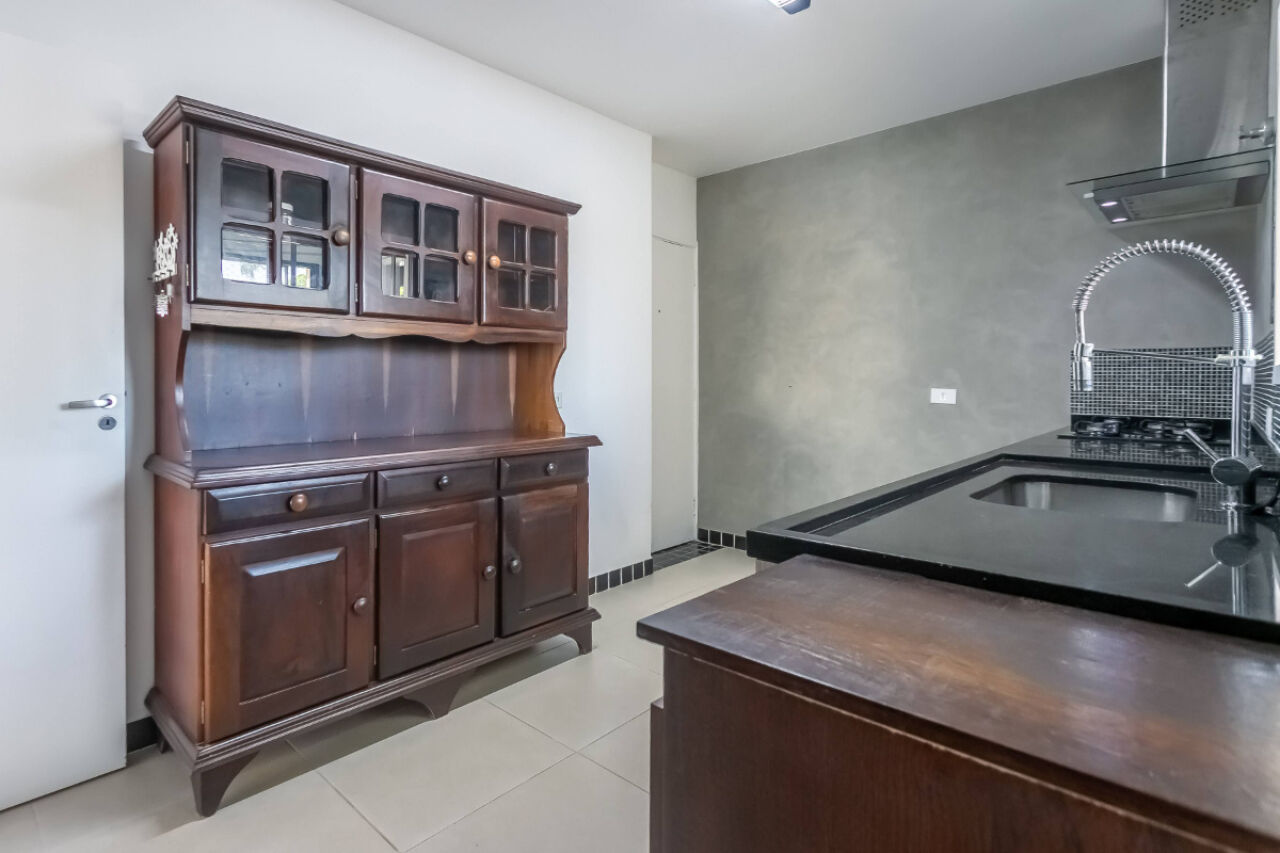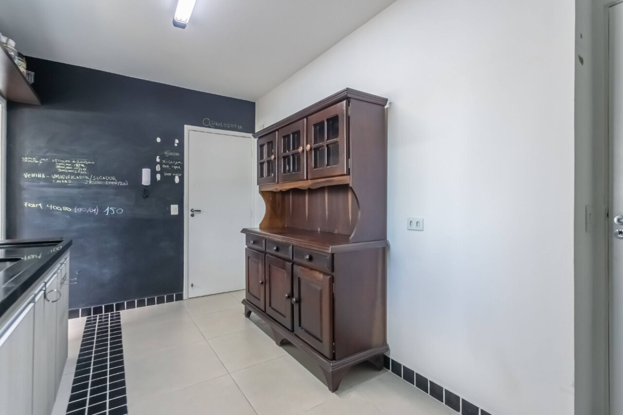 A cozinha planejada é equipada com cooktop, forno e fogão, trazendo funcionalidade e ótimo aproveitamento de espaço. Possui ainda dispensa com prateleiras, lavanderia e banheiro de serviço.
